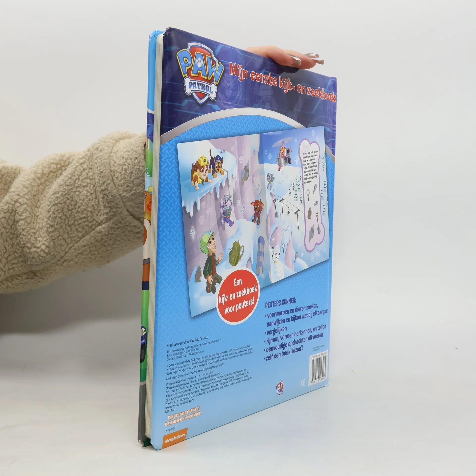 Ryder en de zes heldhaftige pups van de Paw Patrol komen in actie. Groot hardkartonnen prentenboek met paginagrote kleurenillustraties gebaseerd op de animatieserie en zoekopdrachten. Vanaf ca. 3 jaar.