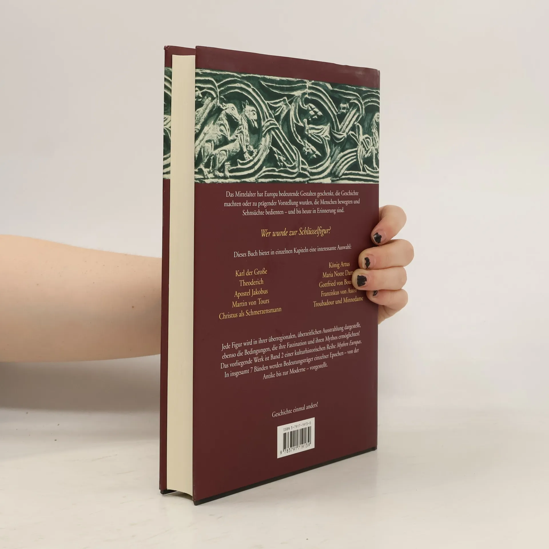 Im Band Mittelalter werden vorgestellt: Theoderich Der heilige Martin König Artus Troubadour und Minnedame Christus als Schmerzensmann Maria, Notre Dame Gottfried von Bouillon Franz von Assisi Der Apostel Jakobus Karl der Große