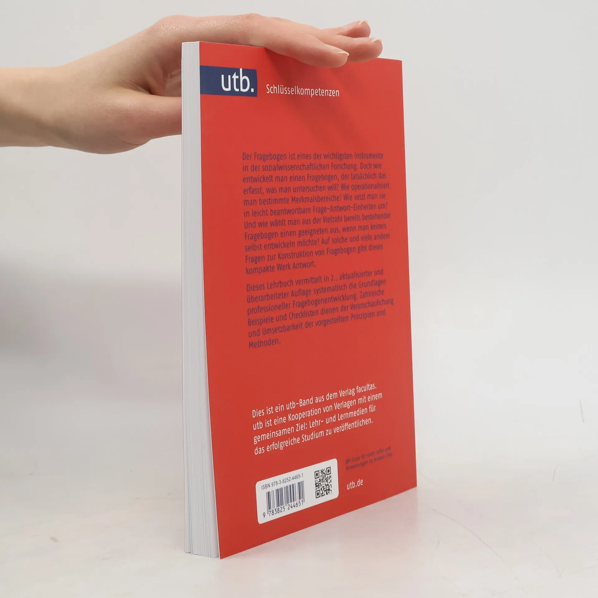 Der Fragebogen ist eines der wichtigsten Instrumente in der sozialwissenschaftlichen Forschung. Doch wie entwickelt man einen Fragebogen, der tatsächlich das erfasst, was man untersuchen will? Wie operationalisiert man bestimmte Merkmalsbereiche? Wie setzt man sie in leicht beantwortbare Frage-Antwort-Einheiten um? Und wie wählt man aus der Vielzahl bereits bestehender Fragebogen einen geeigneten aus, wenn man keinen selbst entwickeln möchte? Auf solche und viele andere Fragen zur Konstruktion von Fragebogen gibt dieses kompakte Werk Antwort. Dieses Lehrbuch vermittelt in 2., aktualisierter und überarbeiteter Auflage systematisch die Grundlagen professioneller Fragebogenentwicklung. Zahlreiche Beispiele und Checklisten dienen der Veranschaulichung und Umsetzbarkeit der vorgestellten Prinzipien und Methoden.