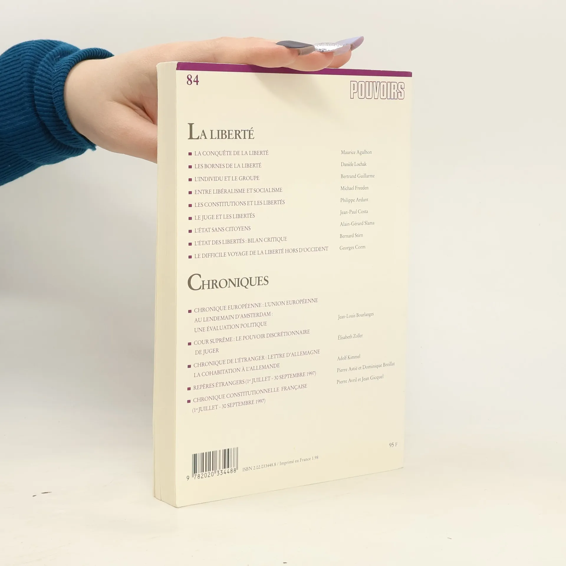 Pouvoirs - 84: La Liberté, Maurice Agulhon, Danièle Lochak, Bertrand Guillarme, Michael Freeden, Philippe Ardant, Jean-Paul Costa, Alain-Gérard Slama, Bernard Stirn, Georges Corm
