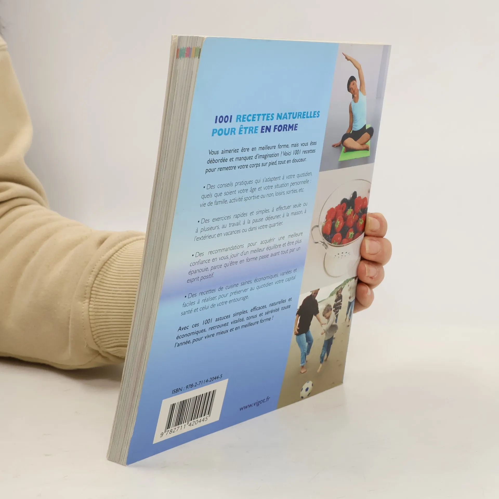 Vous aimeriez être en meilleure forme, mais vous êtes débordée et manquez d'imagination ? Voici 1001 recettes pour remettre votre corps sur pied, tout en douceur. Des conseils pratiques qui s'adaptent à votre quotidien, quels que soient votre âge et votre situation personnelle vie de famille, activité sportive ou non, loisirs, sorties, etc. Des exercices rapides et simples, à effectuer seule ou à plusieurs, au travail, à la pause déjeuner, à la maison, à l'extérieur, en vacances ou dans votre quartier. Des recommandations pour acquérir une meilleure confiance en vous, jouir d'un meilleur équilibre et être plus épanouie, parce qu'être en forme passe avant tout par un esprit positif. Des recettes de cuisine saines, économiques, variées et faciles à réaliser, pour préserver au quotidien votre capital santé et celui de votre entourage. Avec ces 1001 astuces simples, efficaces, naturelles et économiques, retrouvez vitalité, tonus et sérénité toute l'année, pour vivre mieux et en meilleure forme !