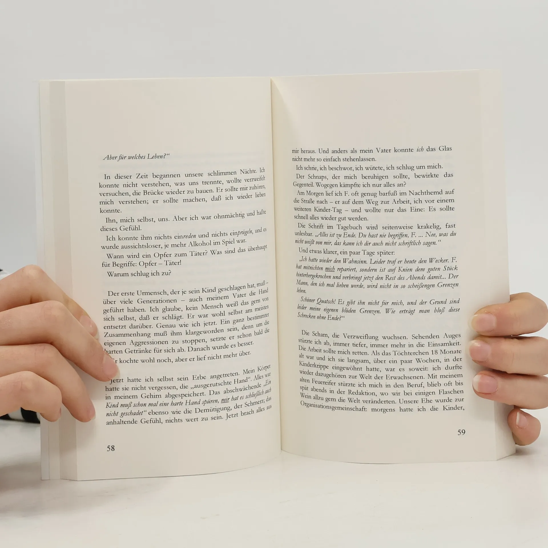 Ein Madchen, Jahrgang 1961, wird arglos hineingeboren in die DDR und versucht, sich darin einzurichten. Ihr Ehrgeiz lasst sie alles ausprobieren, was die Gesellschaft an weiblicher Gleichberechtigung verspricht: Abitur, Studium, Hochzeit, zwei Kinder, ein Stressberuf. Alles scheint gutzugehen, das innere Unbehagen beachtet sie nicht weiter. Dem wachsenden Druck, der immer deutlicher werdenden Schieflage in der Gesellschaft begegnet sie, indem sie "ihre" Krankheit entwickelt: den Alkoholismus. Zur Wendezeit verliert sie auf der ganzen Linie den Boden unter den Fussen: Die Ideologie erweist sich als untauglich, einen religiosen Glauben hat sie nicht. Das Land zerbrockelt, die Eheluge lasst sich nicht mehr aufrechterhalten, sie hangt endgultig an der Flasche. Trotzdem steht am Ende Hoffn