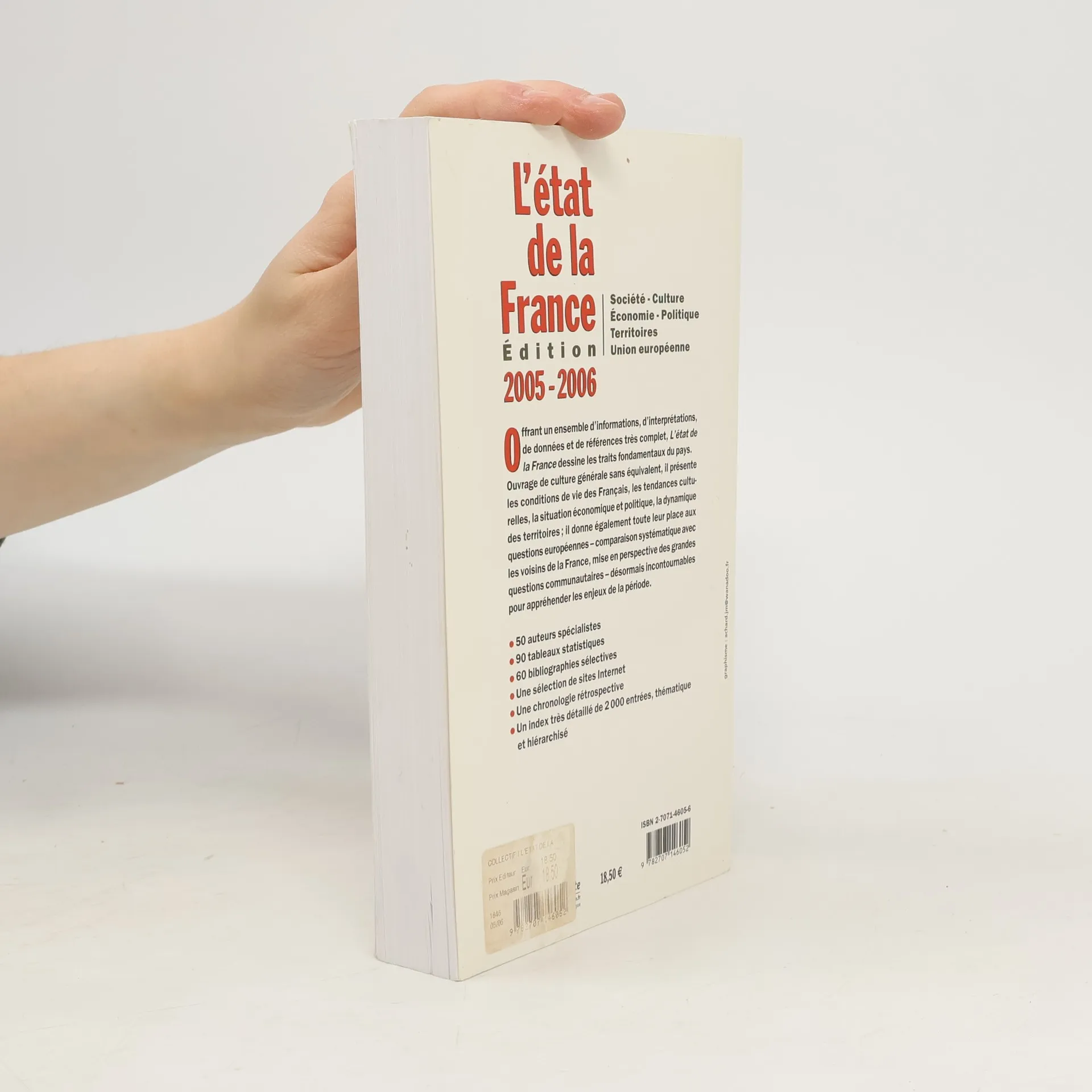 Offrant un ensemble d'informations, d'interprétations, de données et de références très complet, L'état de la France dessine les traits fondamentaux du pays. Ouvrage de culture générale sans équivalent, il présente les conditions de vie des Français, les tendances culturelles, la situation économique et politique, la dynamique des territoires ; il donne également toute leur place aux questions européennes - comparaison systématique avec les voisins de la France, mise en perspective des grandes questions communautaires - désormais incontournables pour appréhender les enjeux de la période.