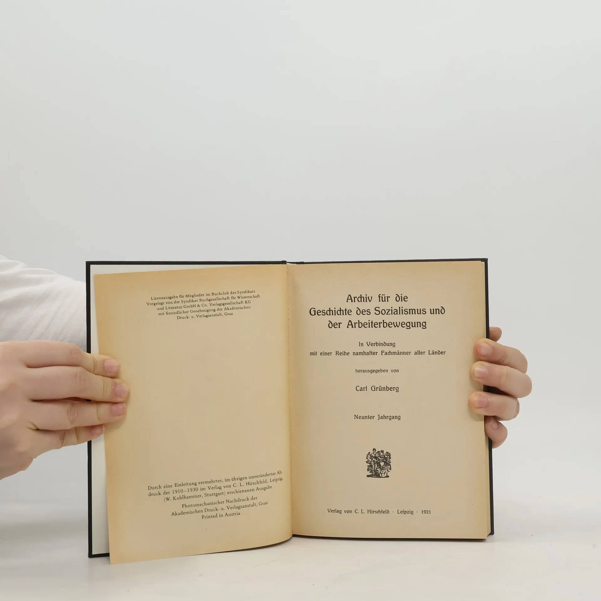 Archiv für die Geschichte des Sozialismus und der Arbeiterbewegung IX, Carl Grünberg