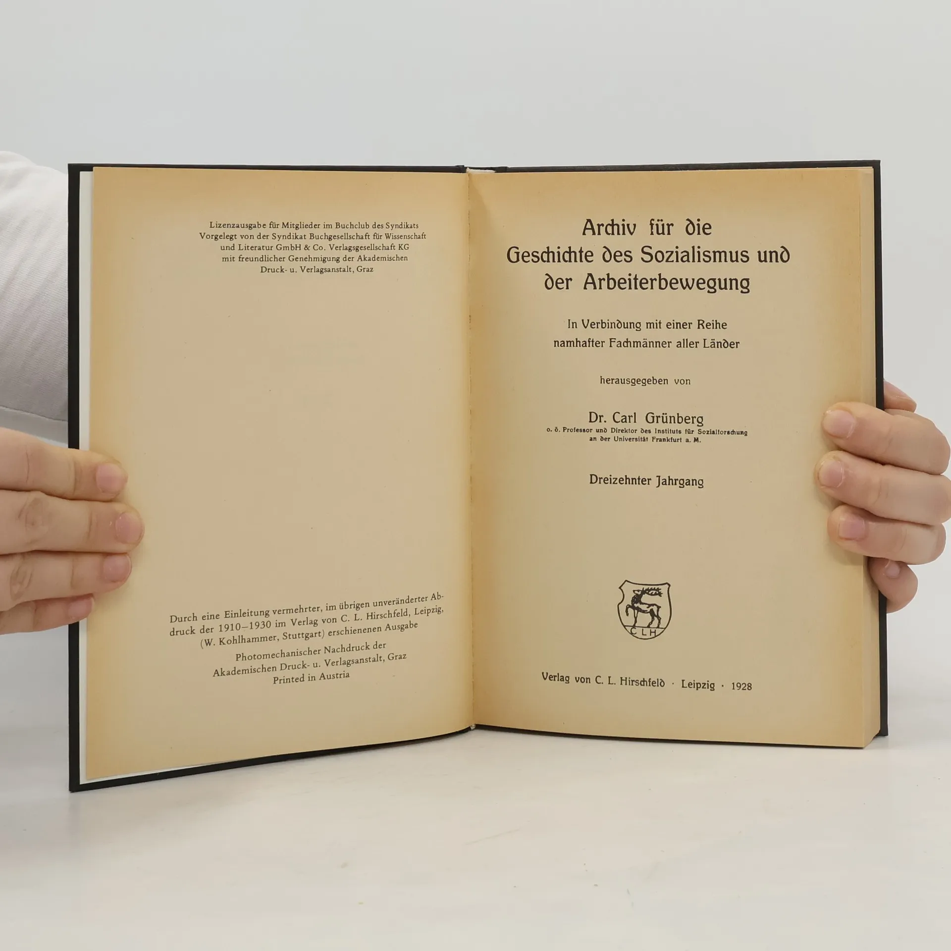 Archiv für die Geschichte des Sozialismus und der Arbeiterbewegung XIII., Carl Grünberg