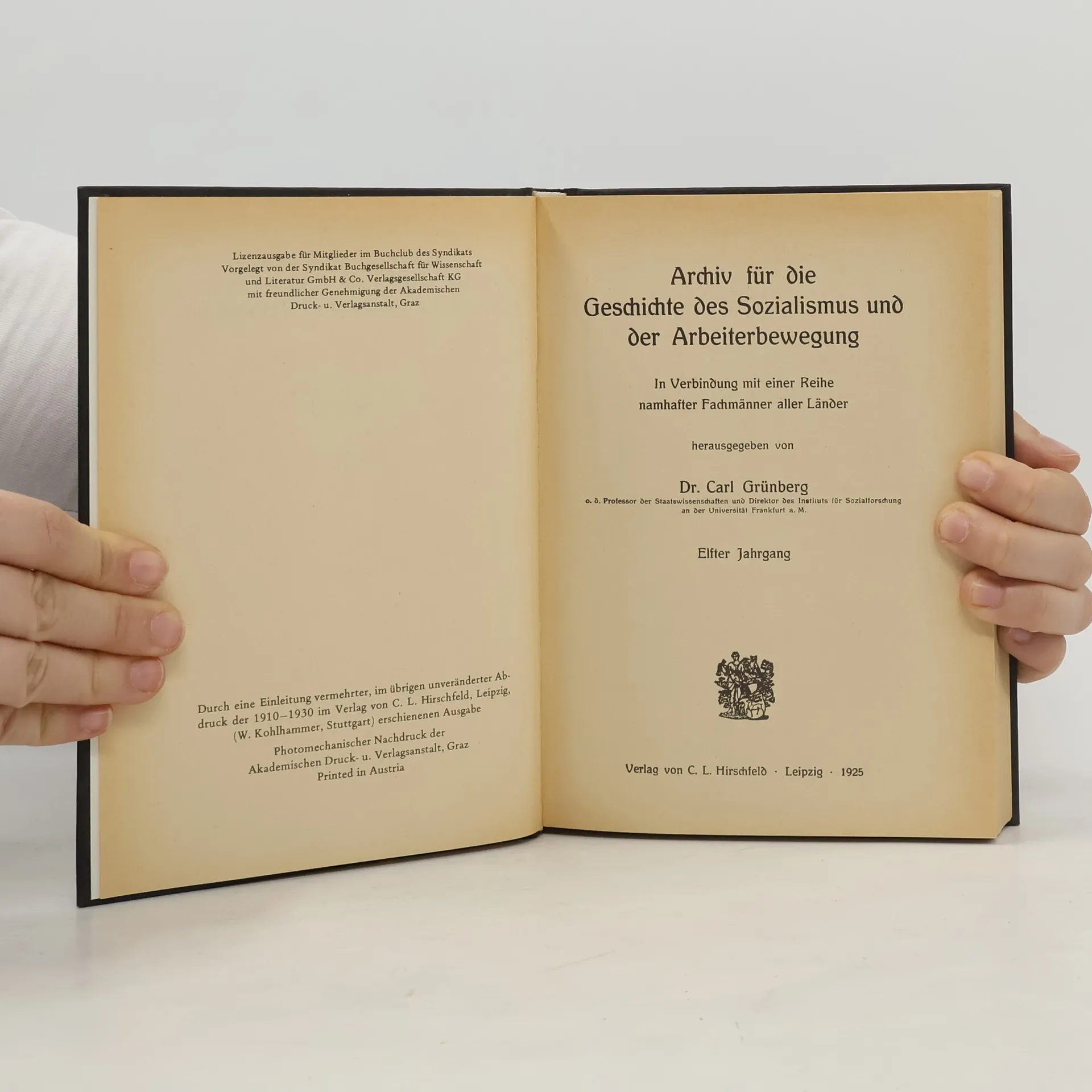 Archiv für die Geschichte des Sozialismus und der Arbeiterbewegung XI, Carl Grünberg