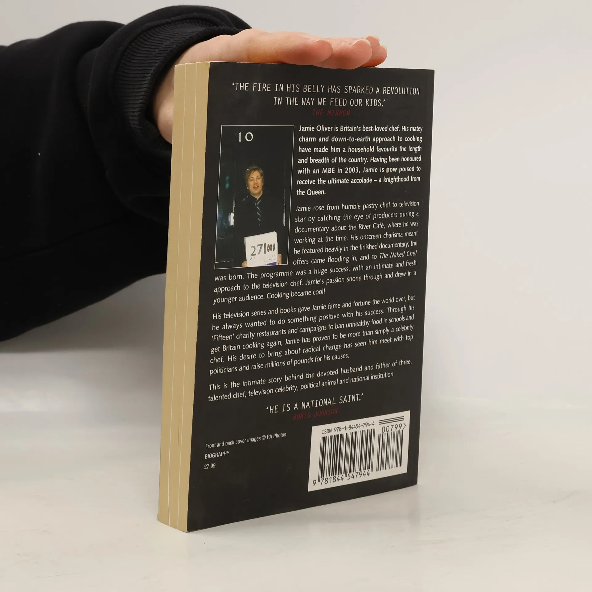 Jamie rose from humble pastry chef to television star by catching the eye of producers during a documentary about the River Café, where he was working at the time. His onscreen charisma meant he featured heavily in the finished documentary; the offers came flooding in, and so <i>The Naked Chef</i> was born. The program was a huge success, with an intimate and fresh approach to the television chef. Jamie's passion shone through and drew in a younger audience. Cooking became cool! His television series and books gave Jamie fame and fortune the world over, but he always wanted to do something positive with his success. Through his Fifteen charity restaurant and campaigns to ban unhealthy food in schools and get Britain cooking again, Jamie has proven to be more than simply a celebrity chef. His desire to bring about radical change has seen him meet with top politicians and raise millions for his causes. Here is the intimate story behind the devoted husband and father of two, television celebrity, political animal, and talented chef.