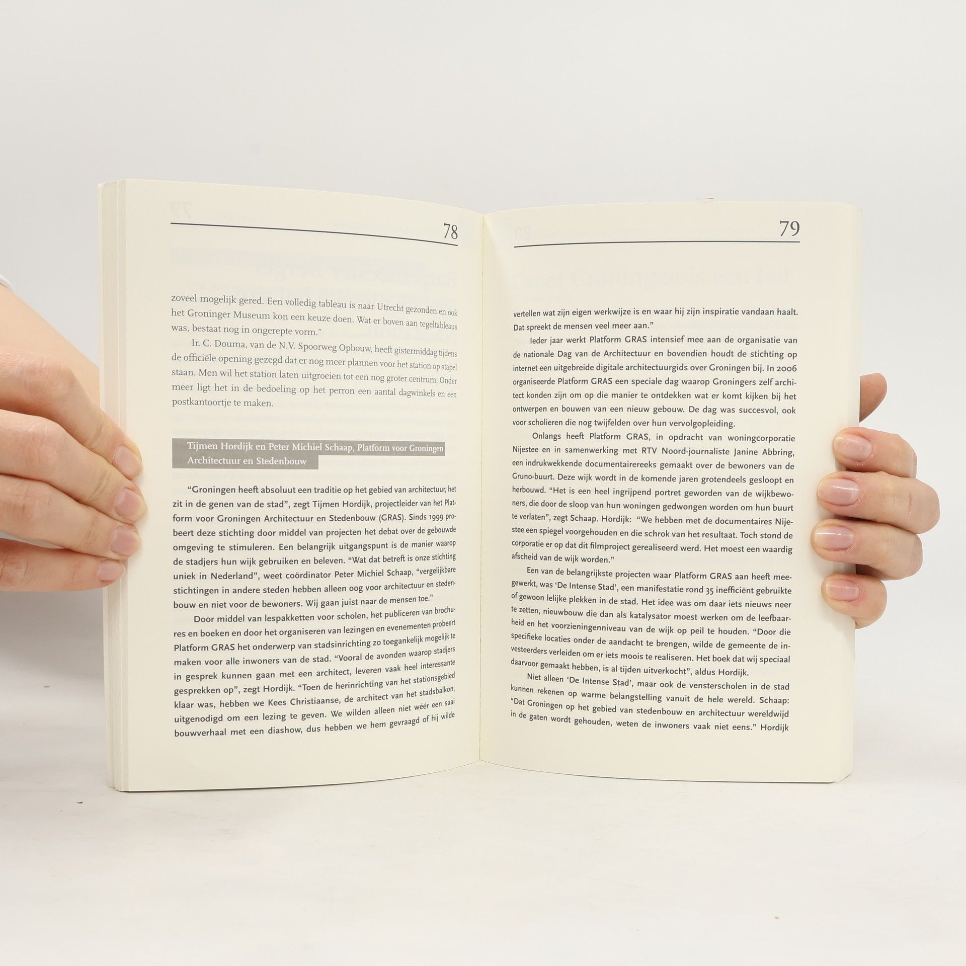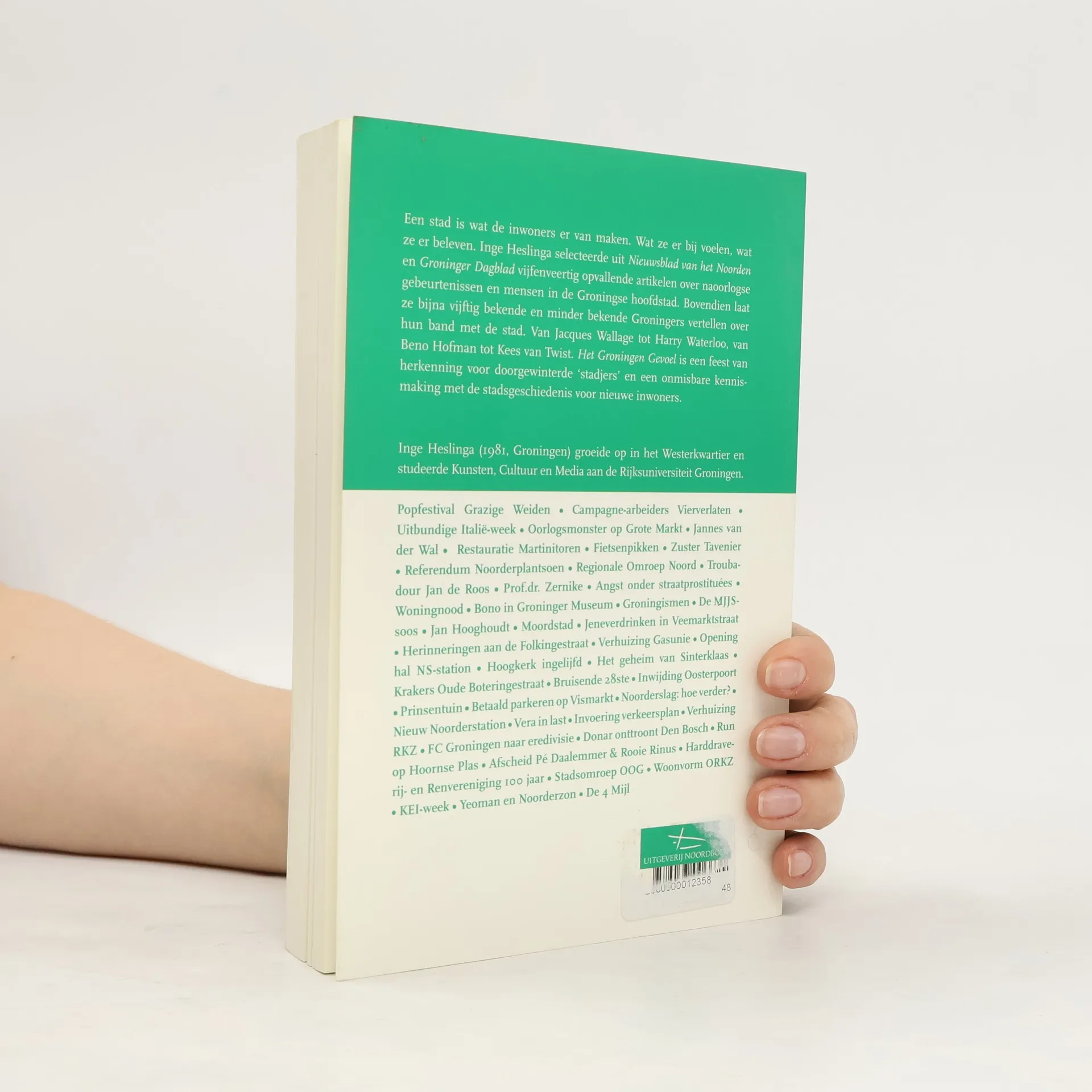 Een stad is wat de inwoners er van maken. Wat ze er bij voelen, wat ze er beleven. Inge Heslinga selecteerde uit Nieuwsblad van het Noorden en Groninger Dagblad vijfenveertig opvallende artikelen over naoorlogse gebeurtenissen en mensen in de Groningse hoofdstad. Bovendien laat ze bijna vijftig bekende en minder bekende Groningers vertellen over hun band met de stad. Van Jacques Wallage tot Harry Waterloo, van Beno Hofman tot Kees van Twist.