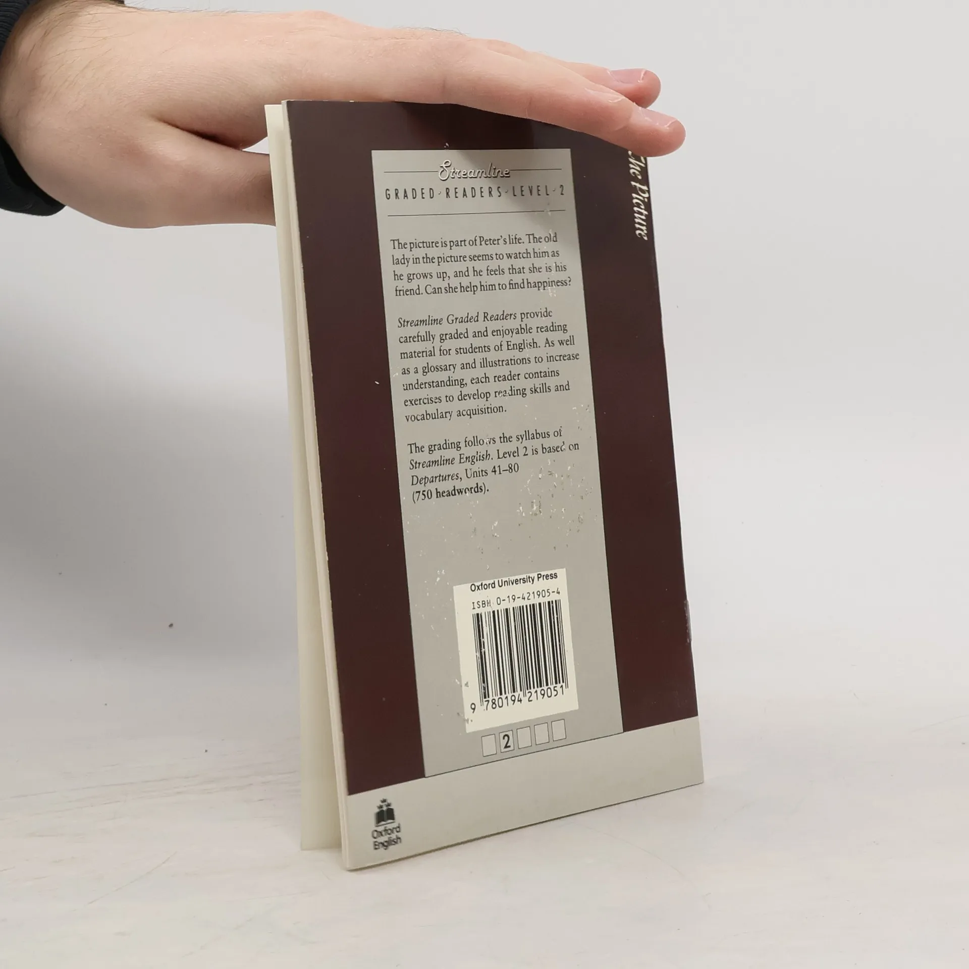 The picture is part of Peter's life. The old lady in the picture seems to watch him as he grows up, and he feels that she is his friend. Can she help him to find happiness?