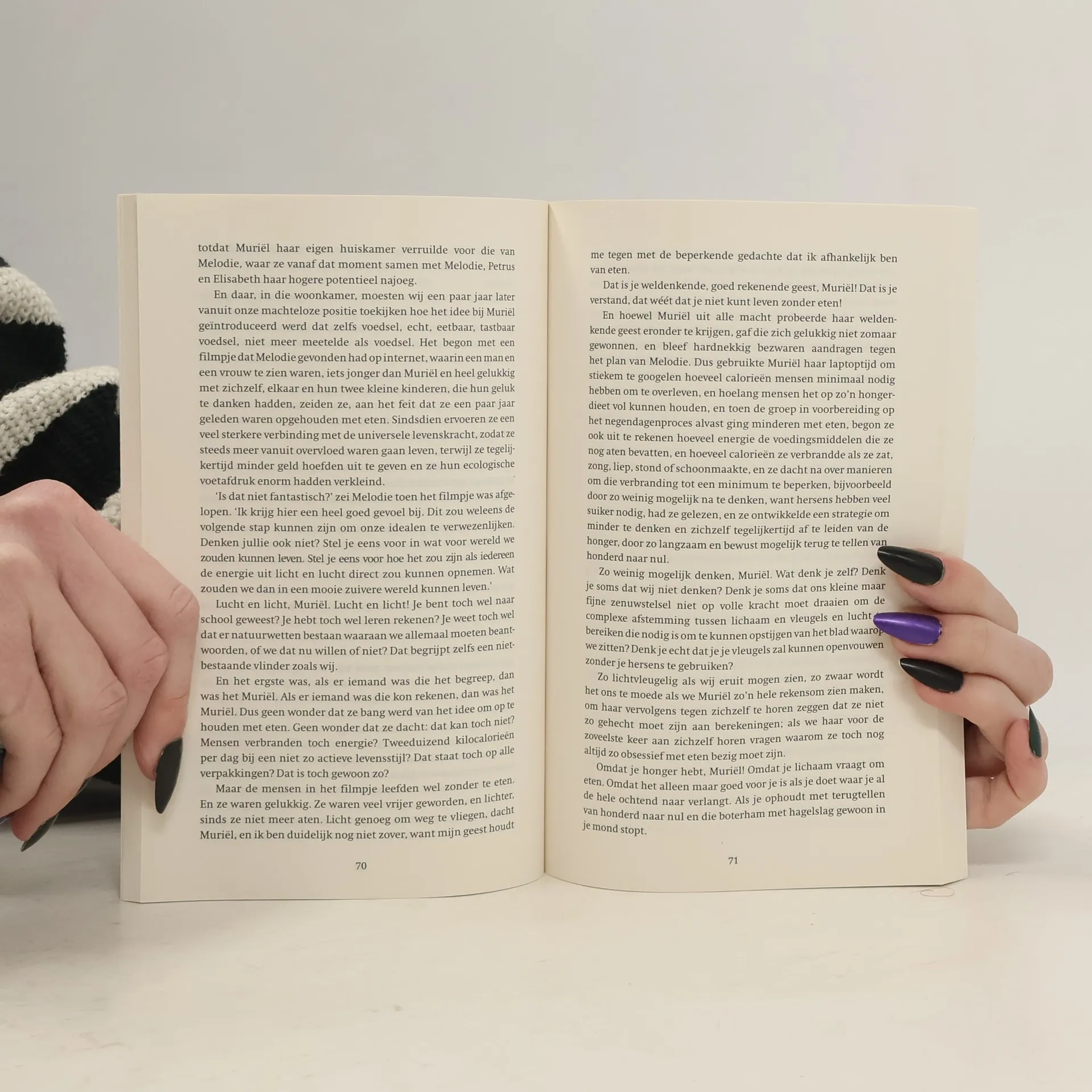 "Midden in de nacht sterft Elisabeth, de oudste bewoonster van Woongroep Klank en Liefde. Haar drie huisgenoten worden aangehouden: het streven van de groep om te stoppen met eten en van licht en liefde te leven, lijkt Elisabeth fataal te zijn geworden. De drie zijn nu verdachten in een strafzaak in plaats van idealisten aan de rand van de samenleving. Door de ogen van verschillende personages en entiteiten zien we dat elke betrokkene een andere kijk heeft op hoe dit kon gebeuren. Wie is er schuldig? En heeft de woongroep nog een toekomst?" -- Back cover.