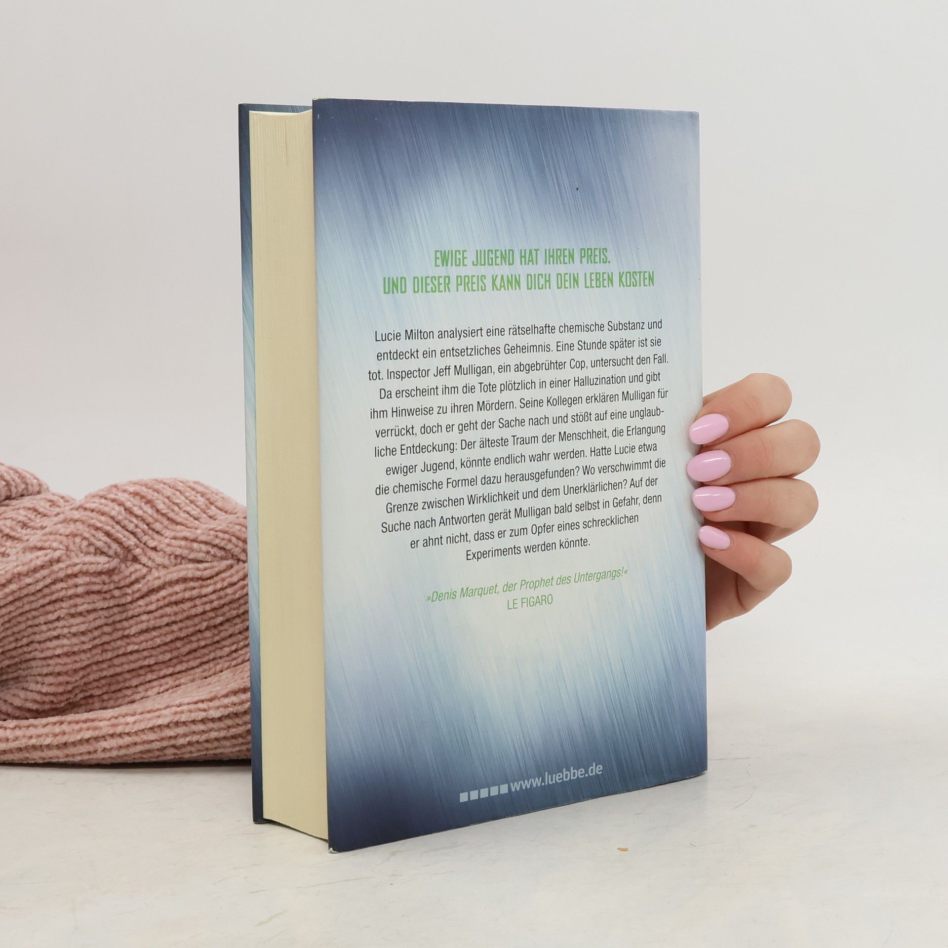 Lucie Milton analysiert eine rätselhafte chemische Substanz und entdeckt ein entsetzliches Geheimnis. Eine Stunde später ist sie tot. Inspector Jeff Mulligan, ein abgebrühter Cop, untersucht den Fall. Da erscheint ihm die Tote plötzlich ineiner Halluzination und gibt ihm Hinweise zu ihren Mördern. Seine Kollegen erklären Mulligan für verrückt, doch er geht der Sache nach und stößt auf eine unglaubliche Entdeckung: Der älteste Traum der Menschheit, die Erlangung ewigerJugend, könnte endlich wahr werden. Hatte Lucie etwa die chemische Formel dazu herausgefunden? Wo verschwimmt die Grenze zwischen Wirklichkeit und dem Unerklärlichen? Auf der Suche nach Antworten gerät Mulligan bald selbst in Gefahr, denner ahnt nicht, dass er zum Opfer eines schrecklichen Experiments werden könnte.