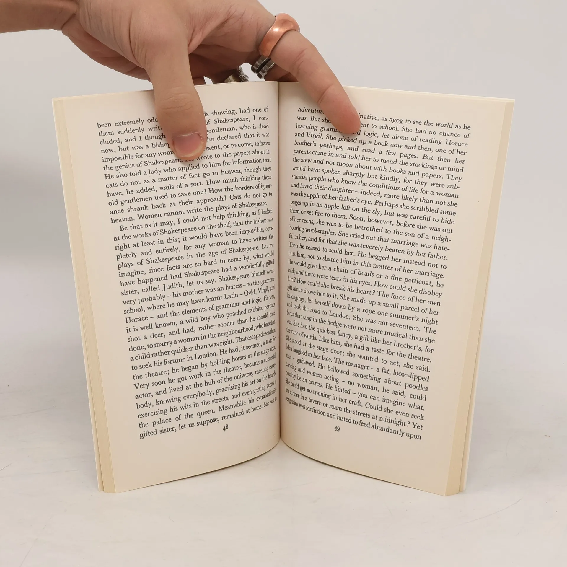 This story grew out of a lecture that Virginia Woolf had been invited to give at Girton College, Cambridge in 1928. It ranges over Jane Austen and Charlotte Bronte, the silent fate of Shakespeare's gifted and imaginary sister, and over the effects of poverty and chastity on female creativity.