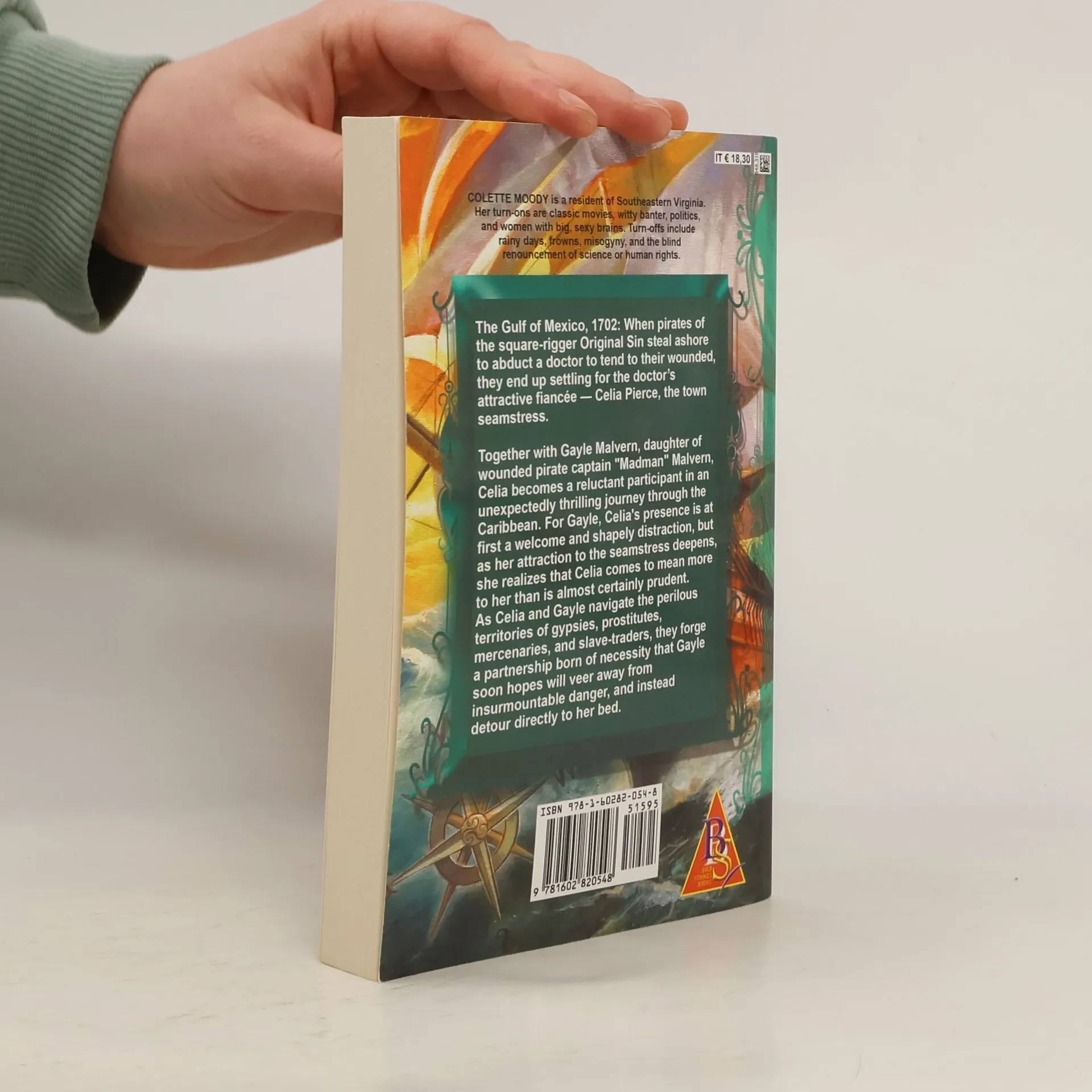 The Gulf of Mexico, 1702: When pirates of the square-rigger Original Sin steal ashore to abduct a doctor to tend to their wounded, they end up settling for the doctor's attractive fiancée Celia Pierce, the town seamstress. Together with Gayle Malvern, daughter of wounded pirate captain Madman Malvern, Celia becomes a reluctant participant in an unexpectedly thrilling journey through the Caribbean. For Gayle, Celia's presence is at first a welcome and shapely distraction, but as her attraction to the seamstress deepens, she realizes that Celia comes to mean more to her than is almost certainly prudent. As Celia and Gayle navigate the perilous territories of gypsies, prostitutes, mercenaries, and slave-traders, they forge a partnership born of necessity that Gayle soon hopes will veer away from insurmountable danger and instead detour directly to her bed.