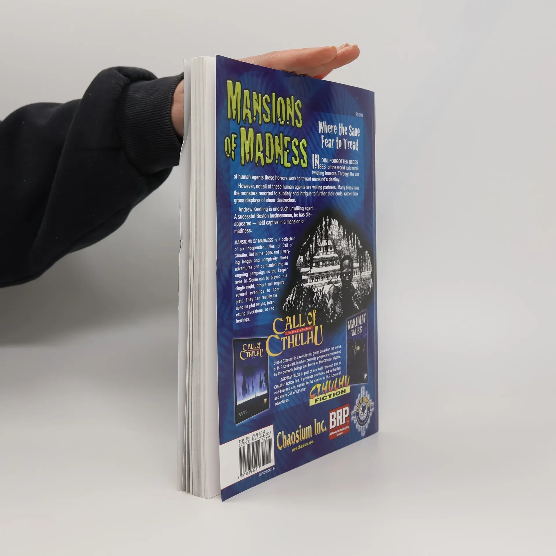 In dim forgotten recesses of the world lurk mind-twisting horrors. Through the use of human agents these horrors work to thwart mankind's destiny.However, not all of these human agents are willing partners. Many times have the monsters resorted to subtlety and intrigue to further their ends, rather than gross displays of sheer destruction. Andrew Keetling is one such unwilling agent. A successful Boston businessman, he has disappeared -- held captive in a mansion of madness. "Mansions Of Madness" is a new collection of five independent tales set in the 1920s. Of varying length and complexity, these adventures can be planted into an ongoing campaign as the keeper sees fit. Some can be played in a single night; others will require several nights to complete. They can readily be used as plot twists, interesting diversions or red herrings.