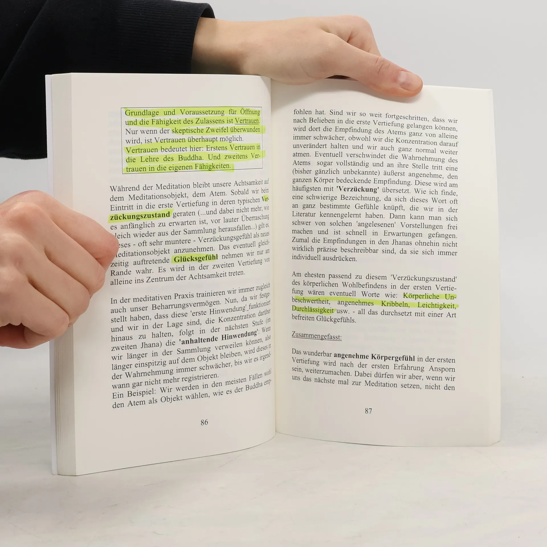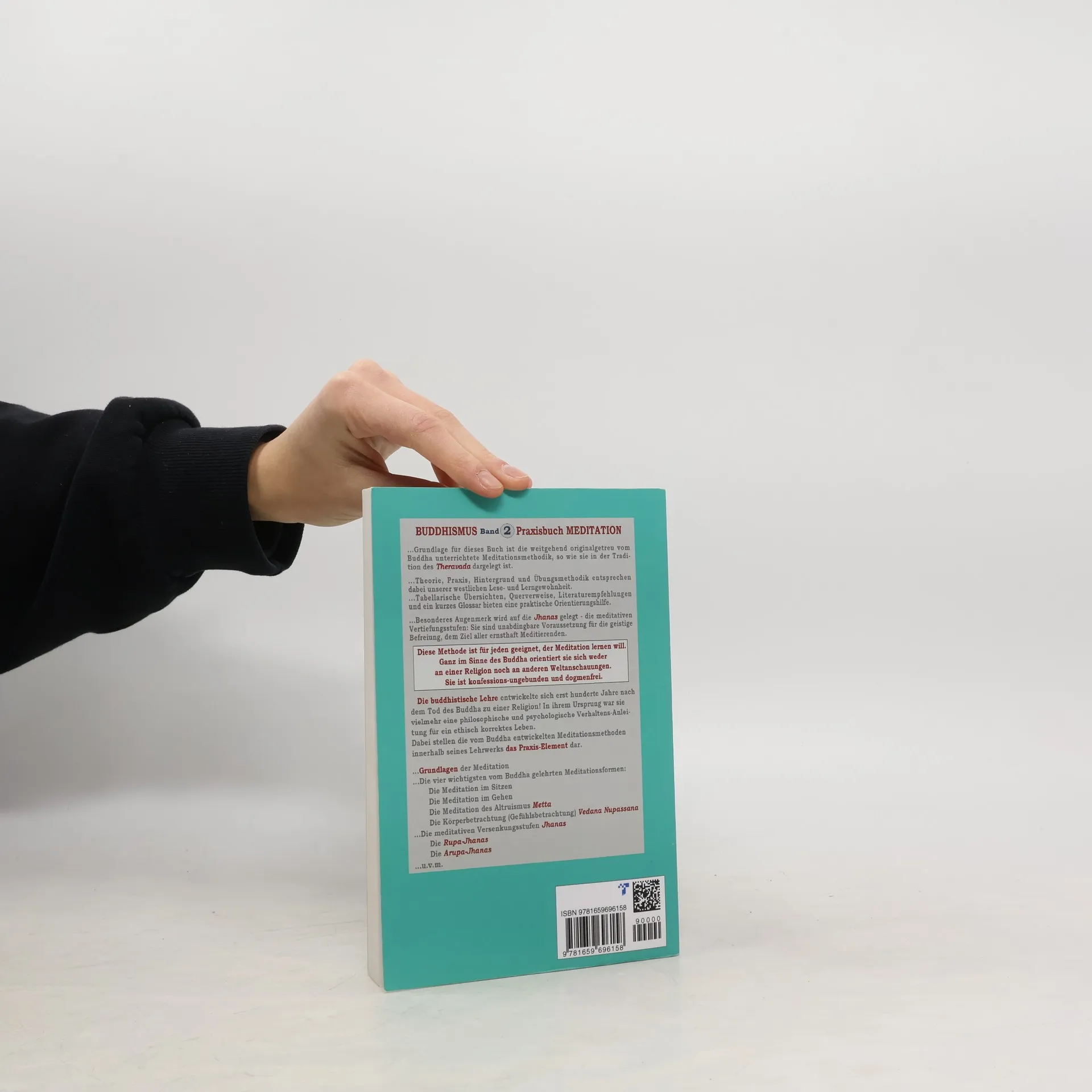 'BUDDHISMUS - Band 2: Praxisbuch Meditation': Taschenbuch, ca. 180 Seiten, ca. 13 x 20 cm ----- Erklärt die Meditation in der originalen Tradition des Theravada, so wie sie der Buddha gelehrt hat. Es ist (der ursprünglichen Lehre des Buddha entsprechend) eine nicht religionsgebundene Methode, die für alle Gläubigen ebenso wie für konfessionslose Menschen gleichermaßen geeignet ist. ----- Ausführliche Anleitungen: Sitz-Meditation, Geh-Meditation, 'Reise durch den Körper', Meditation der liebenden Güte ('Metta')... Mit geführten Meditationen (Textformat und download-link zum audio-file)----- Nicht nur die Methode der Meditation wird hier ausführlich beschrieben, sondern auch die Hintergründe wie etwa die genaue Beschreibung aller acht meditativen Vertiefungen, der Jhanas.----- ...Die wichtigsten Kernaussagen des Buddhismus werden fundiert und allgemeinverständlich vermittelt. ...Tabellarische Übersichten, Querverweise, Literaturempfehlungen und ein Glossar bieten eine praktische Orientierungshilfe. ...Grundlage für dieses Buch ist der im 'Pali-Kanon' überlieferte Theravada-Buddhismus - also die weitestgehend originalgetreu vom Buddha unterrichtete Form. ----- Ergänzend hierzu ist erschienen: 'BUDDHISMUS - Band 1: Die Lehre' erklärt die Lehre des Buddha in der originalen Tradition des Theravada, so wie sie der Buddha unterrichtet hat: (https: //www.amazon.de/dp/165967154X)