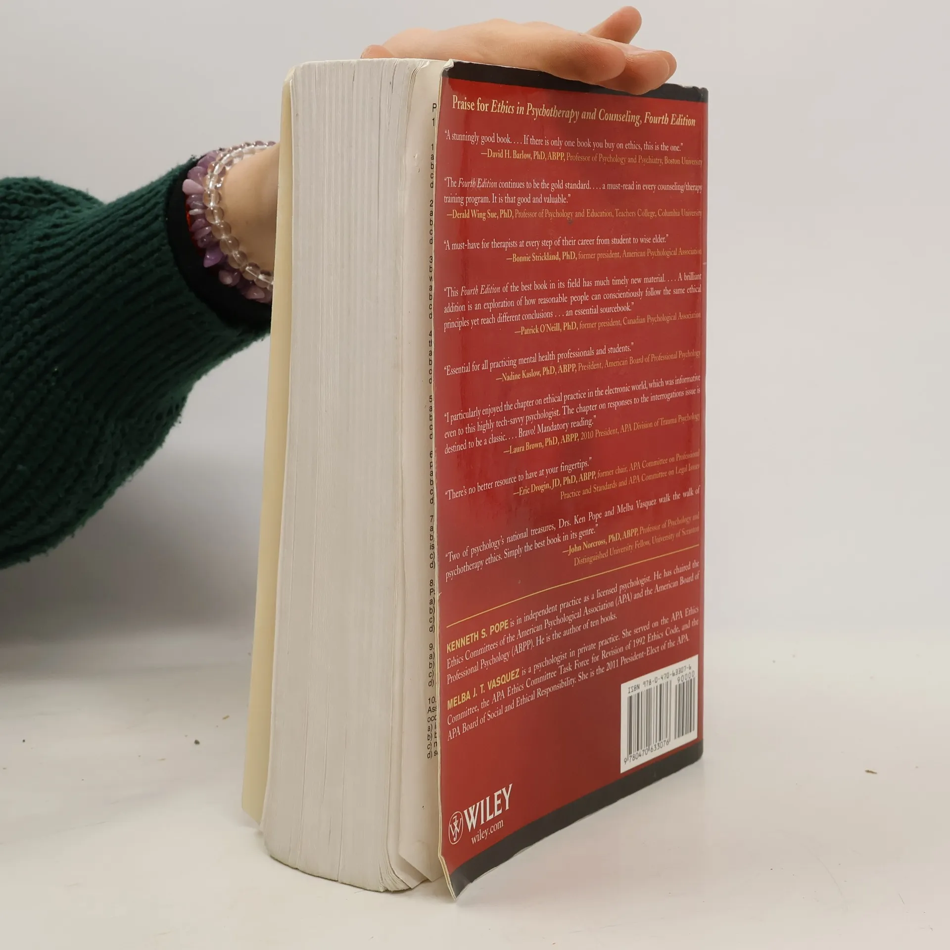 Praise for Ethics in Psychotherapy and Counseling, Fourth Edition "A stunningly good book. . . . If there is only one book you buy on ethics, this is the one."— David H. Barlow , PhD, ABPP, Professor of Psychology and Psychiatry, Boston University "The Fourth Edition continues to be the gold standard. . . . a must-read in every counseling/therapy training program. It is that good and valuable."— Derald Wing Sue , PhD, Professor of Psychology and Education, Teachers College, Columbia University "A must-have for therapists at every step of their career from student to wise elder."— Bonnie Strickland , PhD, former president, American Psychological Association "This Fourth Edition of the best book in its field has much timely new material. . . . A brilliant addition is an exploration of how reasonable people can conscientiously follow the same ethical principles yet reach different conclusions . . . an essential sourcebook."— Patrick O'Neill , PhD, former president, Canadian Psychological Association "Essential for all practicing mental health professionals and students."— Nadine Kaslow , PhD, ABPP, President, American Board of Professional Psychology "I particularly enjoyed the chapter on ethical practice in the electronic world, which was informative even to this highly tech-savvy psychologist. The chapter on responses to the interrogations issue is destined to be a classic. . . . Bravo! Mandatory reading."— Laura Brown , PhD, ABPP, 2010 President, APA Division of Trauma Psychology "There's no better resource to have at your fingertips."— Eric Drogin , JD, PhD, ABPP, former chair, APA Committee on Professional Practice and Standards and APA Committee on Legal Issues "Two of psychology's national treasures, Drs. Ken Pope and Melba Vasquez walk the walk of psychotherapy ethics. Simply the best book in its genre."— John Norcross , PhD, ABPP, Professor of Psychology and Distinguished University Fellow, University of Scranton
