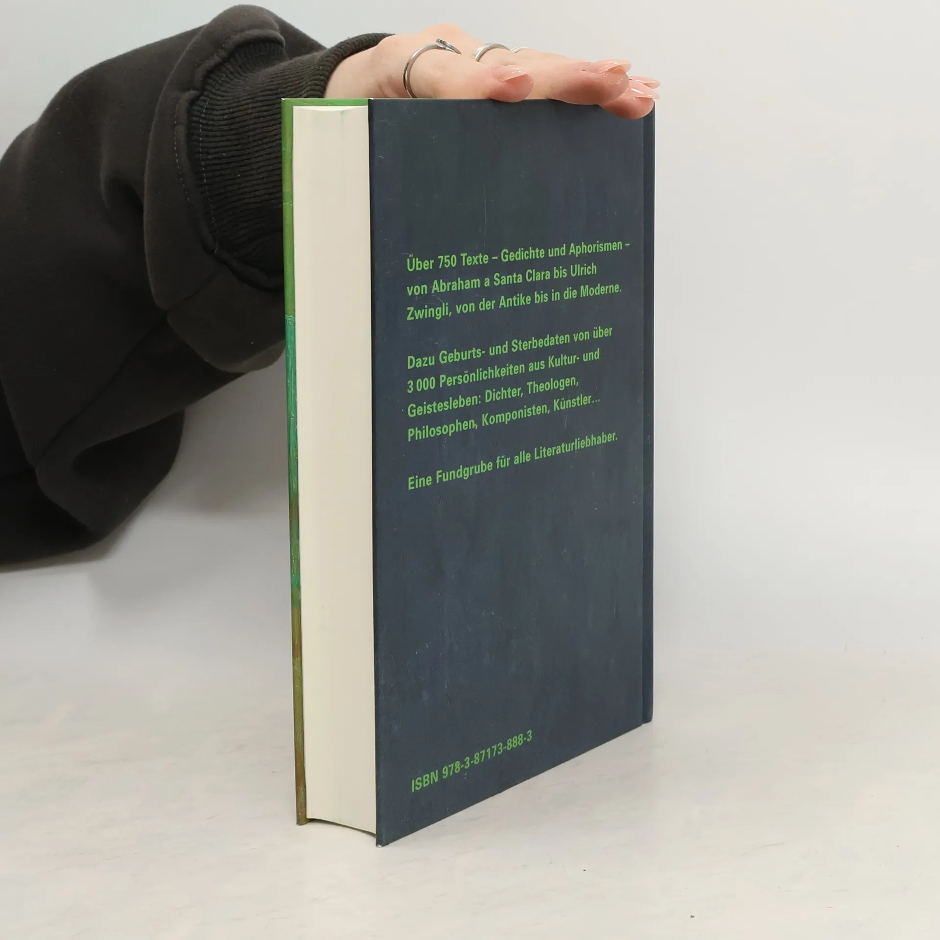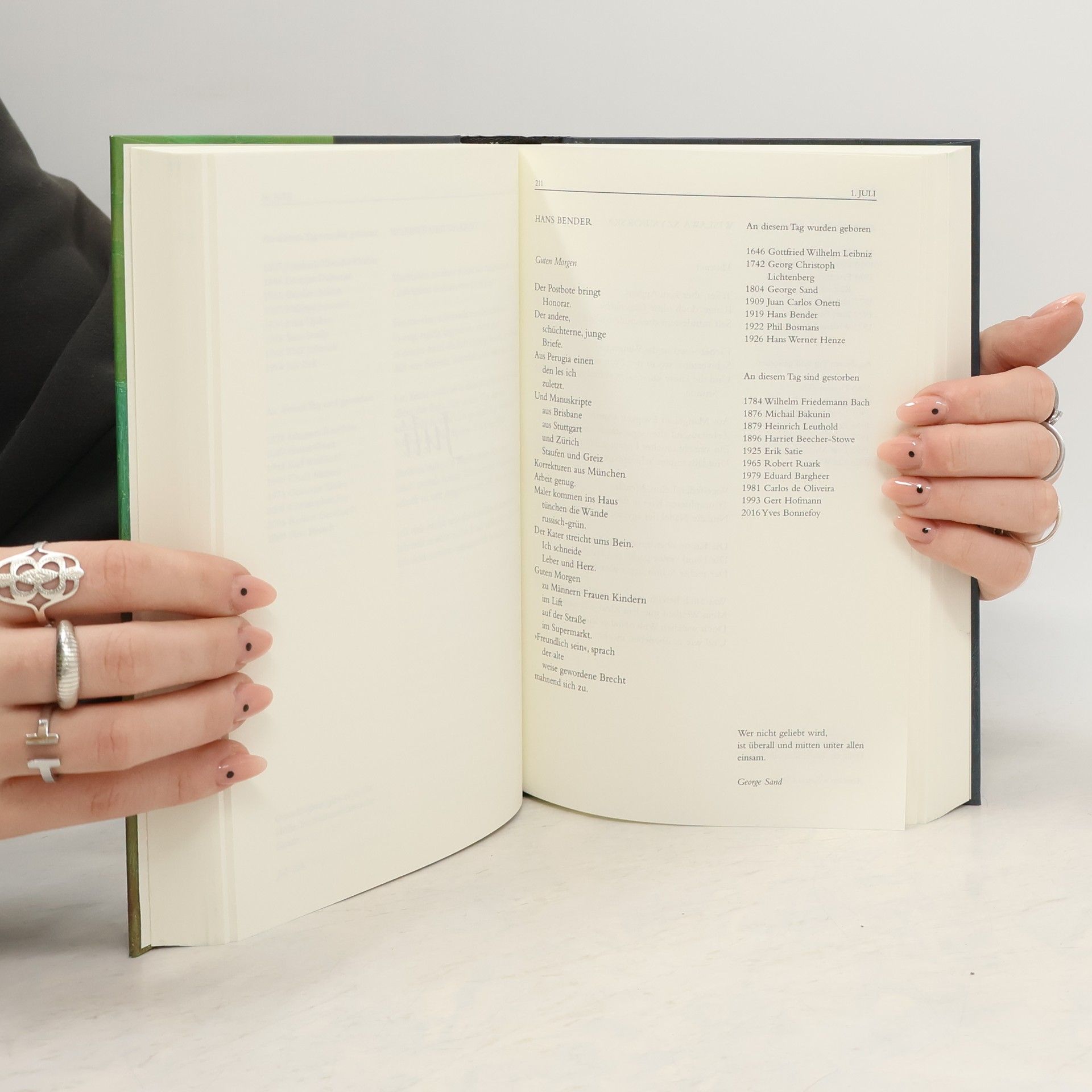 Lebensdaten von über 3000 Persönlichkeiten aus Kultur, Theologie, Philosophie und Politik. An jedem Tag ein Aphorismus und ein Gedicht von Personen, die an dem Tag geboren oder gestorben sind.
