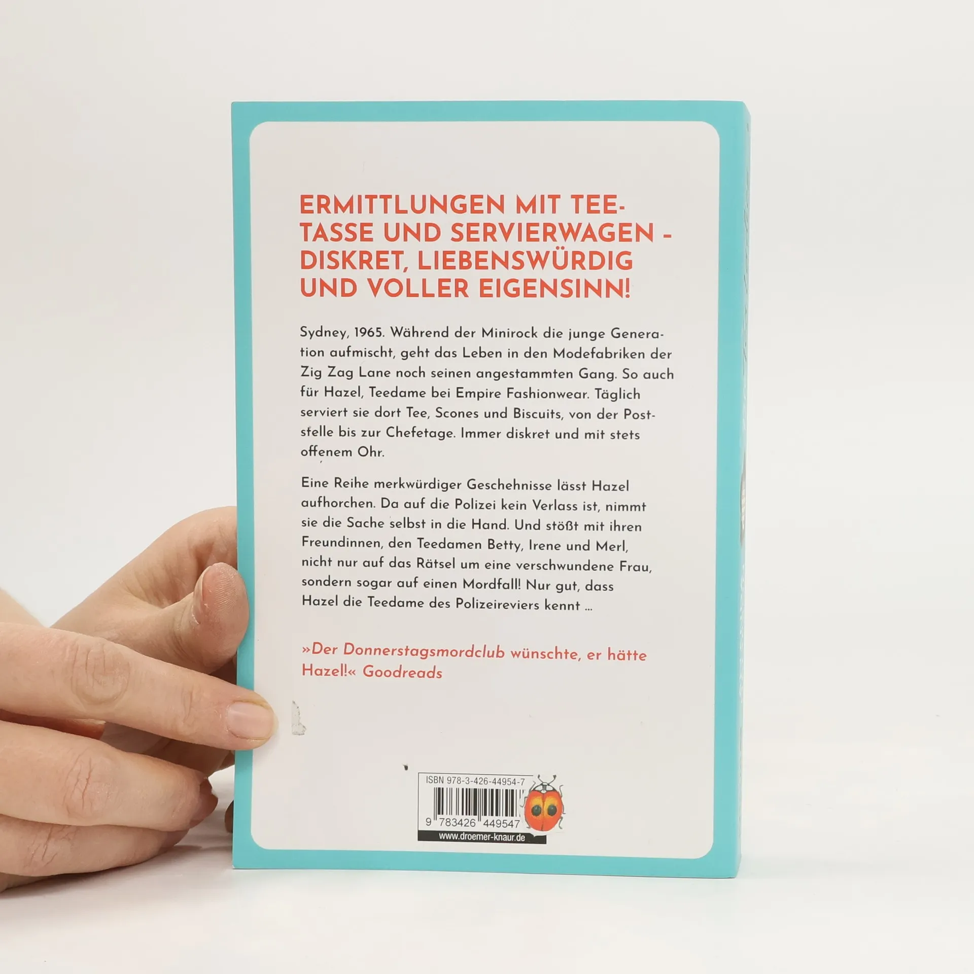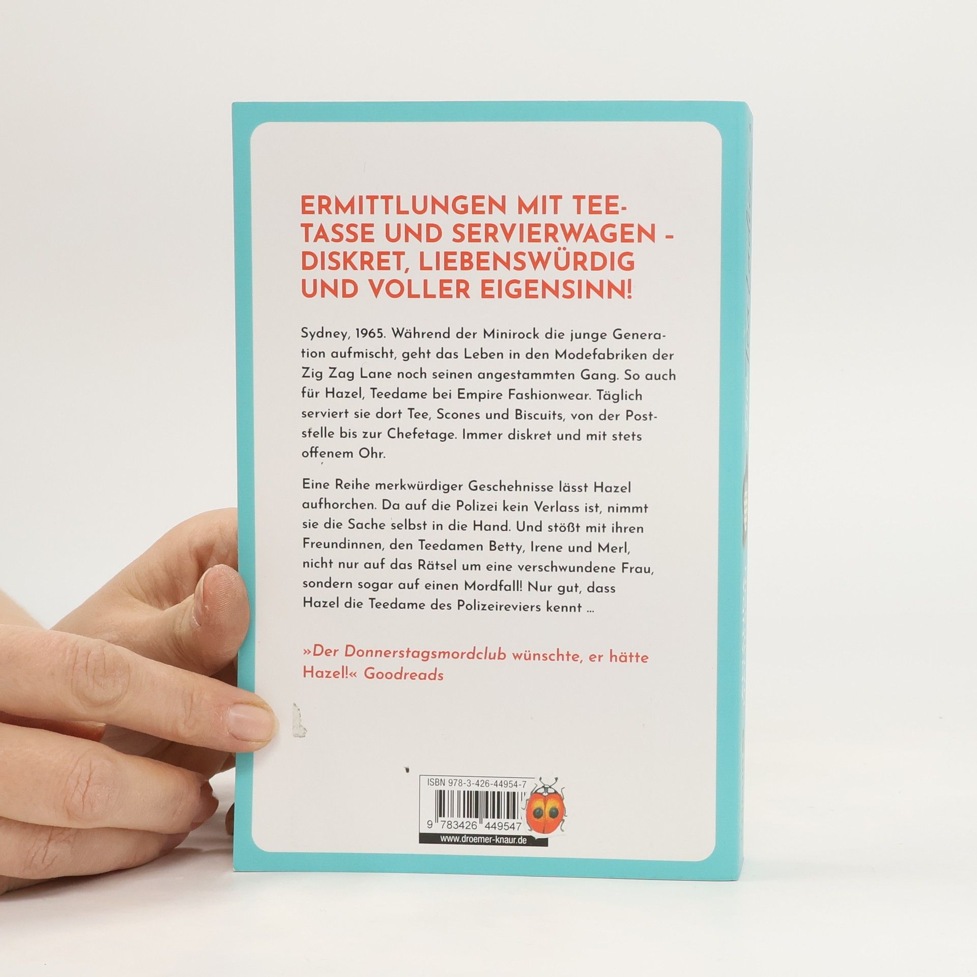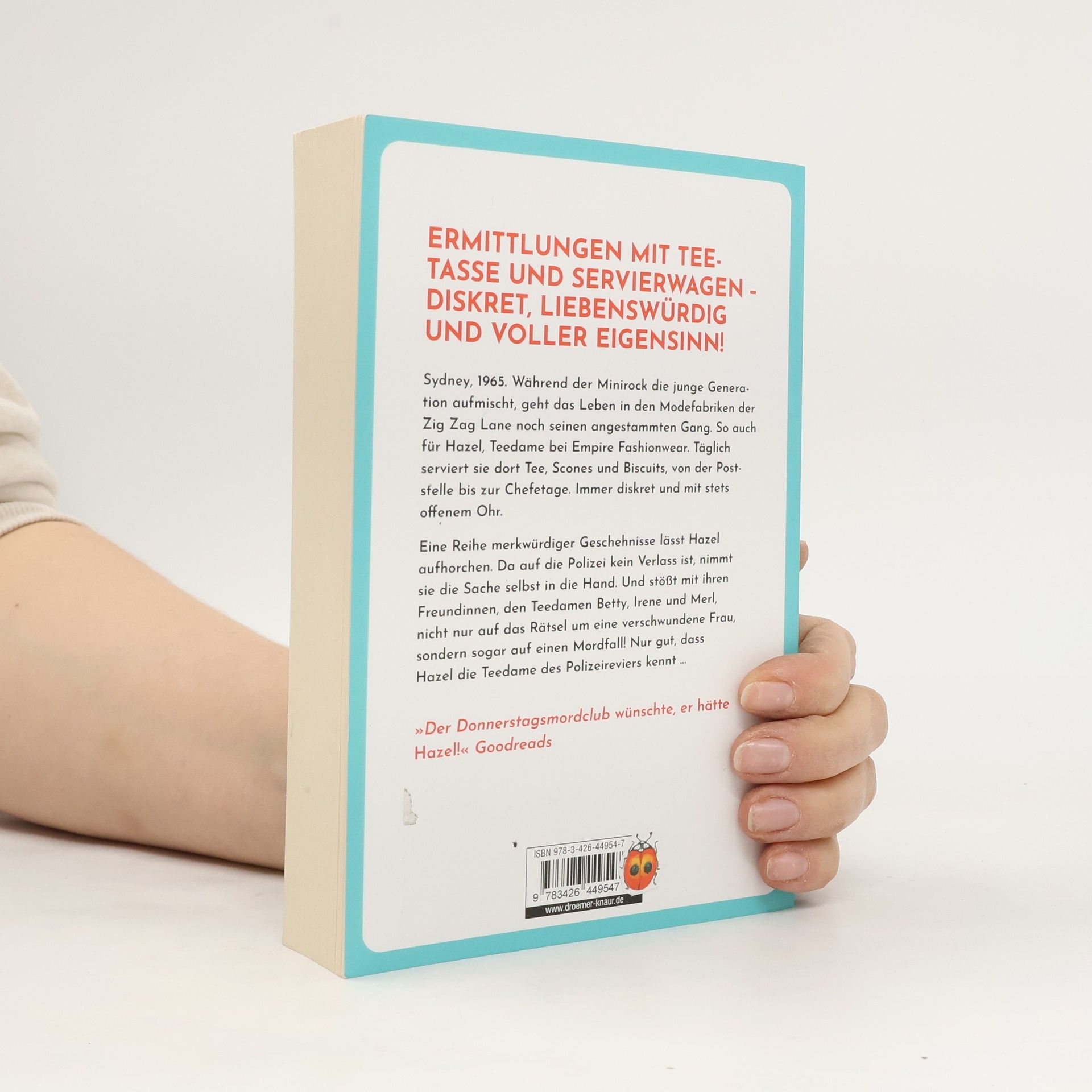 In diesem hinreißend charmanten und humorvollen Cosy Krimi aus dem Sydney der 1960er-Jahre treten Die Tea Ladies ins Rampenlicht – und nehmen mit Teetasse und Servierwagen die Ermittlungen auf. Vorhang auf für Hazel, Betty, Irene und Merl! Sydney, 1965. Während der Minirock die junge Generation aufmischt, geht das Leben in den Modefabriken der Zig Zag Lane noch seinen angestammten Gang. So auch für Hazel, Tea Lady bei Empire Fashionwear. Pünktlich und mit stets offenem Ohr serviert sie den Mitarbeitern Tee, Scones und Biscuits – von der Poststelle bis zur Chefetage. Diskretion ist dabei ihr oberstes Gebot. Doch dann verschwindet eine junge Frau, ein Feuer bricht aus, und bei Empire Fashionwear gibt es einen Toten! Die Polizei tritt auf der Stelle. Also beschließt Hazel, den Dingen selbst auf den Grund zu gehen. Gemeinsam mit ihren Freundinnen, den Tea Ladies Betty, Irene und Merl, nimmt sie die Fährte auf. Und legt sich dabei nicht nur mit russischen Mobstern, sondern auch mit korrupten Beamten an. Aber zum Glück kennt Hazel die Tea Lady des Polizeipräsidiums … »Die Tea Ladies ist ein großartiges Abenteuer, voller Wendungen, überraschender Entdeckungen … und Scones.« Better Reads Diskret, liebenswürdig und voller Eigensinn lüften die Tea Ladies selbst das bestgehütete Geheimnis – und lösen nicht nur das Rätsel um eine verschollene Zirkusartistin, sondern auch einen äußerst vertrackten Mordfall! Zwischen den Swinging Sixties und den Good ol‘ days : Die Tea Ladies vereinen ein originelles Setting mit herrlich skurrilen und liebenswürdigen Figuren und bescheren den Leser*innen außerordentlich unterhaltsamen Krimispaß – für Fans von klassischen Whodunits zum Miträtseln! »Der Donnerstagsmordclub wünschte, er hätte Hazel!« Goodreads