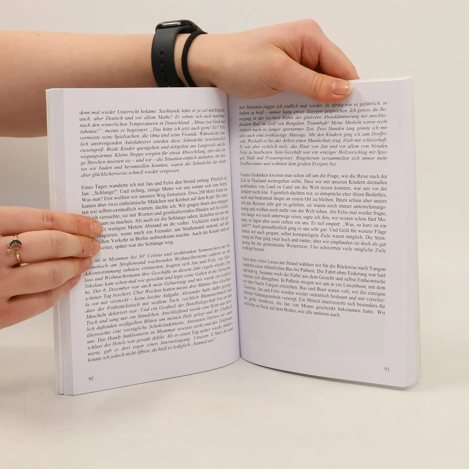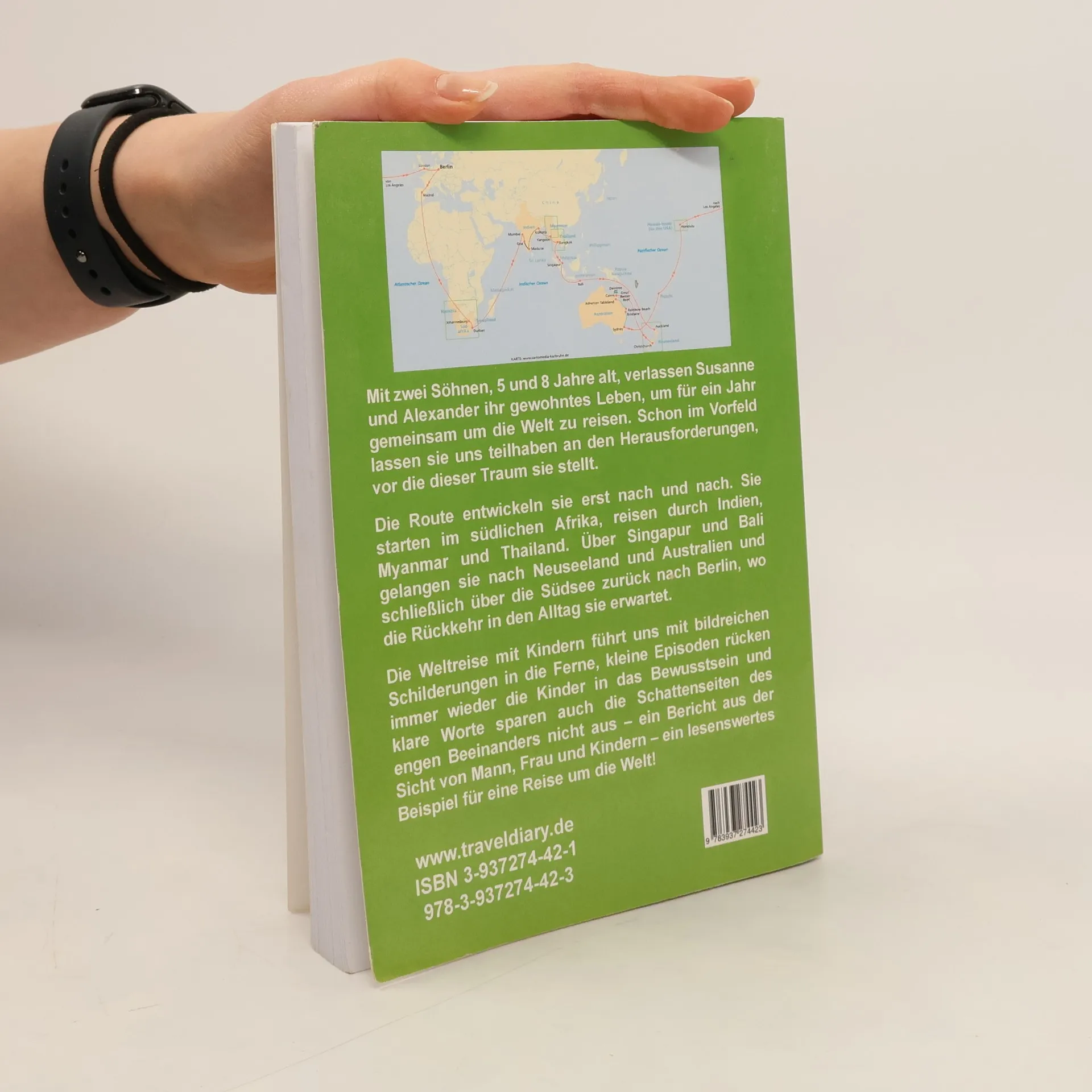 Mit zwei Söhnen, 5 und 8 Jahre alt, verlassen Susanne und Alexander Saade ihr gewohntes Leben, um für ein Jahr gemeinsam um die Welt zu reisen. Schon im Vorfeld lassen sie uns teilhaben an den Herausforderungen, die sich durch Arbeit, Kosten, Gesundheit, Schule und auch durch persönliche Ängste stellen. Die Route entwickeln sie erst nach und nach. Sie starten im südlichen Afrika, reisen durch Indien, Myanmar und Thailand. Über Singapur und Bali gelangen sie nach Neuseeland und Australien und schließlich über die Südsee zurück nach Berlin, wo die harte Rückkehr in den Alltag sie erwartet.Die Weltreise mit Kindern führt uns mit bildreichen Schilderungen in die Ferne, kleine Episoden rücken immer wieder die Kinder in das Bewusstsein und klare Worte sparen auch die Schattenseiten des engen Beeinanders nicht aus – ein Buch aus der Sicht von Mann, Frau und Kindern – ein lesenswertes Beispiel für eine Reise um die Welt!“Mit seinen fünf Jahren hat er schon die halbe Welt gesehen… Aus einem Glas ragen die schwarz-weißen Borsten eines Stachelschweins – selbst gesammelt in Indien…”(Kölner Stadtanzeiger)