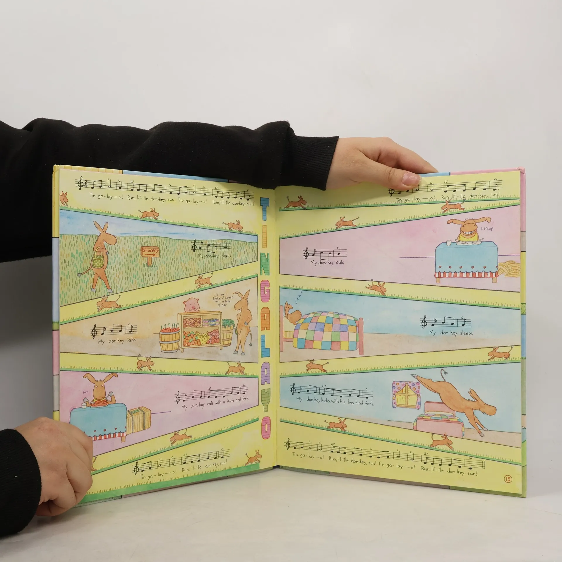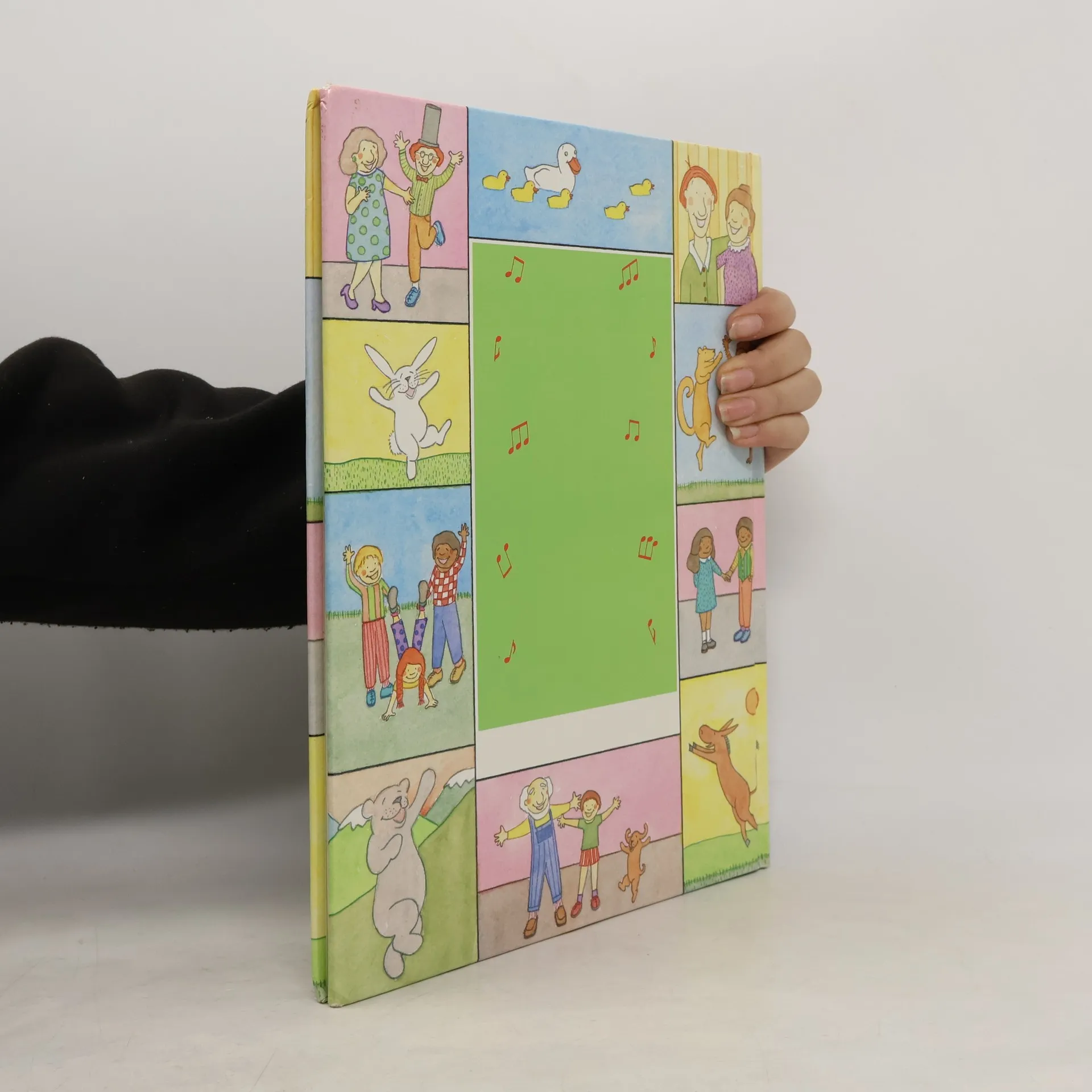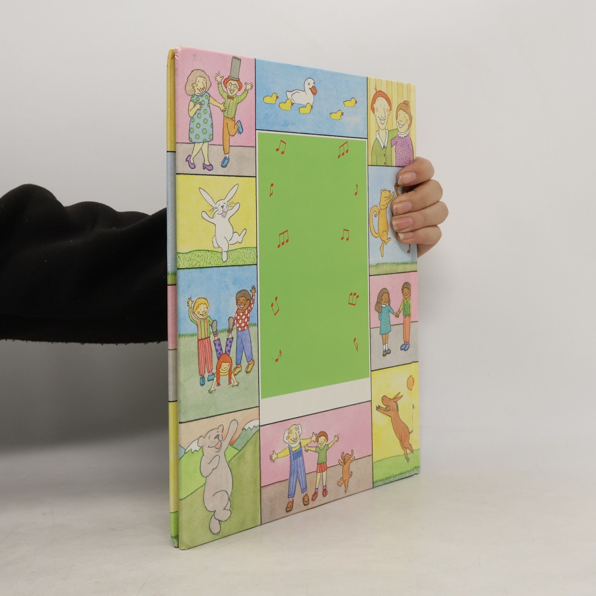 An illustrated collection of camp songs and traditional songs with piano and guitar music, including "A Tisket, a Tasket," "Pop Goes the Weasel," and "Do Your Ears Hang Low?"