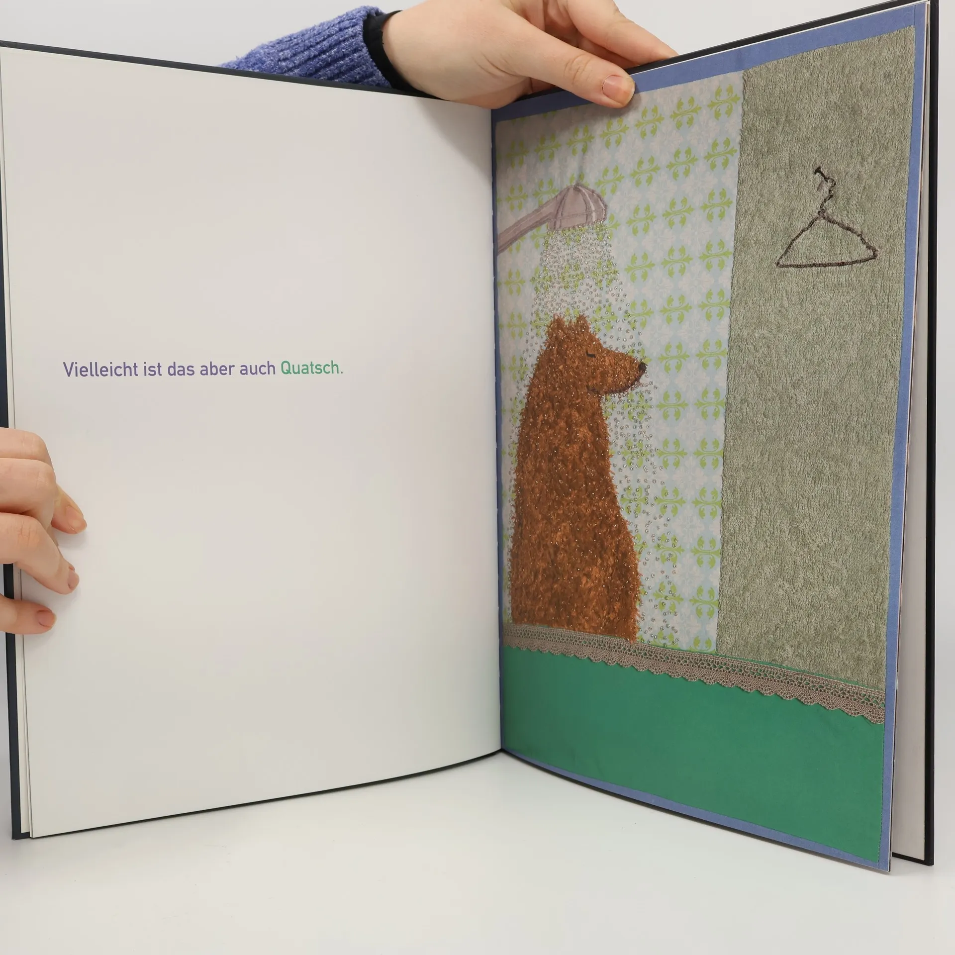 Ein aufregender Tag für das Bärenkind Butz! Nachdem es seine Mama, das Schwein Wutz, aufgeweckt hat und Papa Bär unter der Dusche war, erlebt der kleine Bär einen Tag voll kindlicher Abenteuer: Er trifft seine Freunde am Teich, geht mit Mama zum Einkaufen und sucht mit Papa Bär Gespenster. Wir begleiten den kleinen Bären im liebevollen Mikrokosmos seiner Familie auf Entdeckungstour. Bilderbuch aus genähten Bildern.