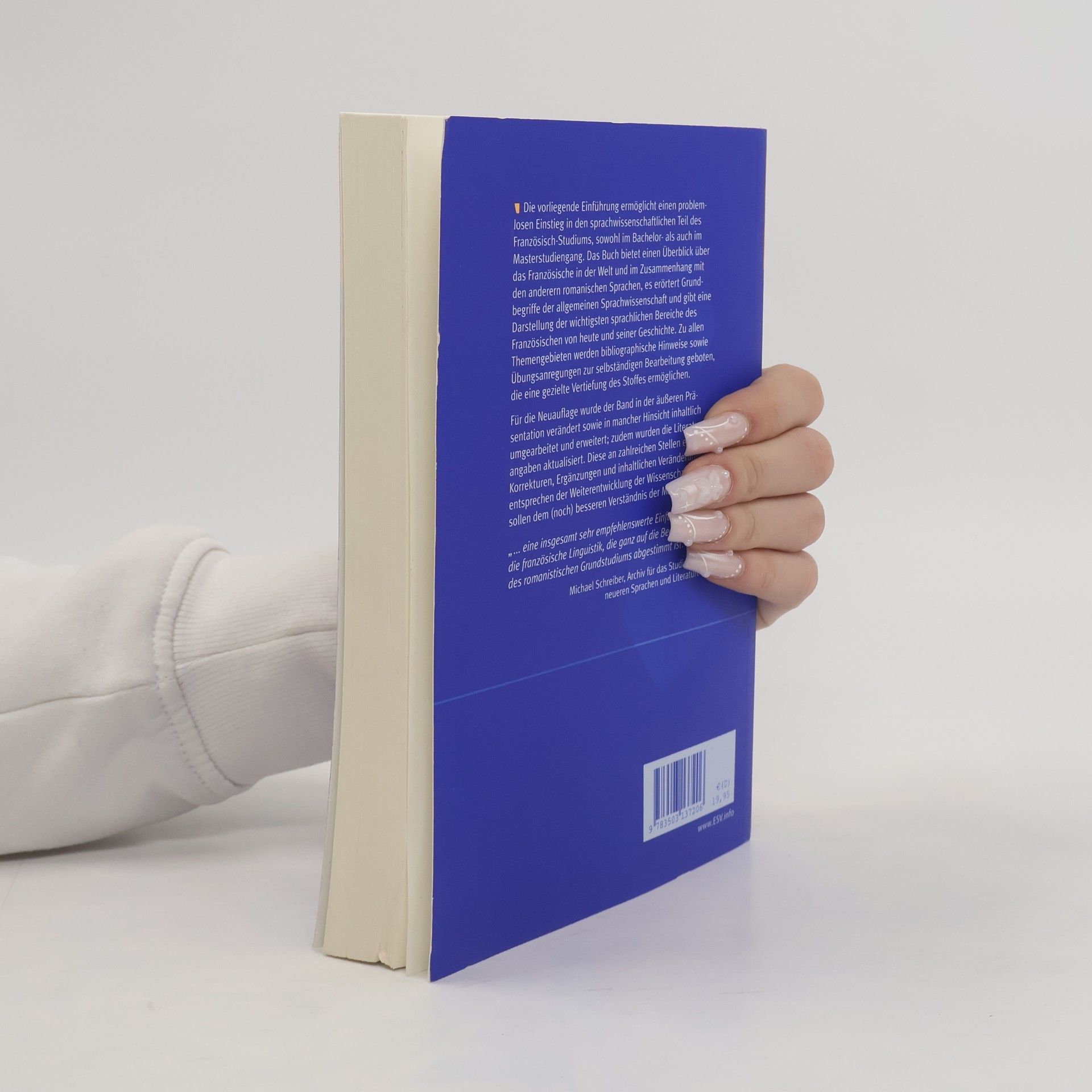 Die vorliegende Einführung ermöglicht einen problemlosen Einstieg in den sprachwissenschaftlichen Teil des Französisch-Studiums, sowohl im Bachelor- als auch im Masterstudiengang. Das Buch bietet einen Überblick über das Französische in der Welt und im Zusammenhang mit den anderen romanischen Sprachen, es erörtert Grundbegriffe der allgemeinen Sprachwissenschaft und gibt eine Darstellung der wichtigsten sprachlichen Bereiche des Französischen von heute und seiner Geschichte. Zu allen Themengebieten werden bibliographische Hinweise sowie Übungsanregungen zur selbständigen Bearbeitung geboten, die eine gezielte Vertiefung des Stoffes ermöglichen. Für die Neuauflage wurde der Band in der äußeren Präsentation verändert sowie in mancher Hinsicht inhaltlich umgearbeitet und erweitert; zudem wurden die Literaturangaben aktualisiert. Diese an zahlreichen Stellen erfolgten Korrekturen, Ergänzungen und inhaltlichen Veränderungen entsprechen der Weiterentwicklung der Wissenschaft und sollen zudem dem (noch) besseren Verständnis der Materie dienen.