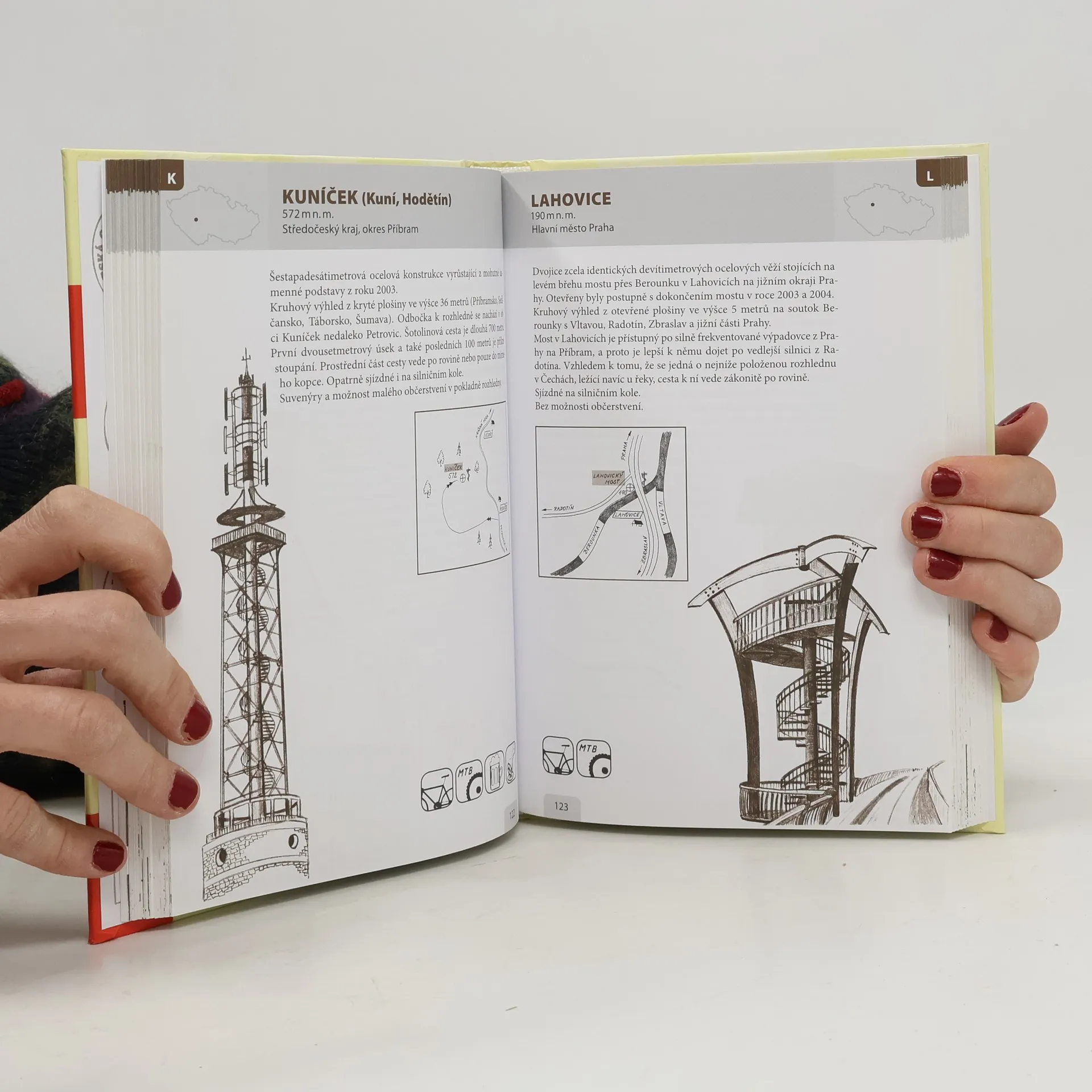 243 kreslených rozhleden, 243 mapek s popisem tras. Originální kniha, která se od ostatních rozhlednových průvodců odlišuje tím, že veškeré stavby v ní uváděné jsou kreslené. Autor navštívil všechny dostupné rozhledny v České republice na kole a zachytil je mnohdy lépe, než to umožňuje fotografie. Ke každému z 243 objektů je připojena mapka s popisem trasy, kudy a jak se k rozhledně dostat na kole, pěšky i jinak. Nechybí ani piktogramy zpodrobňující informace. Doposud žádná publikace nesoustředila takový počet rozhlednových objektů jako tato.