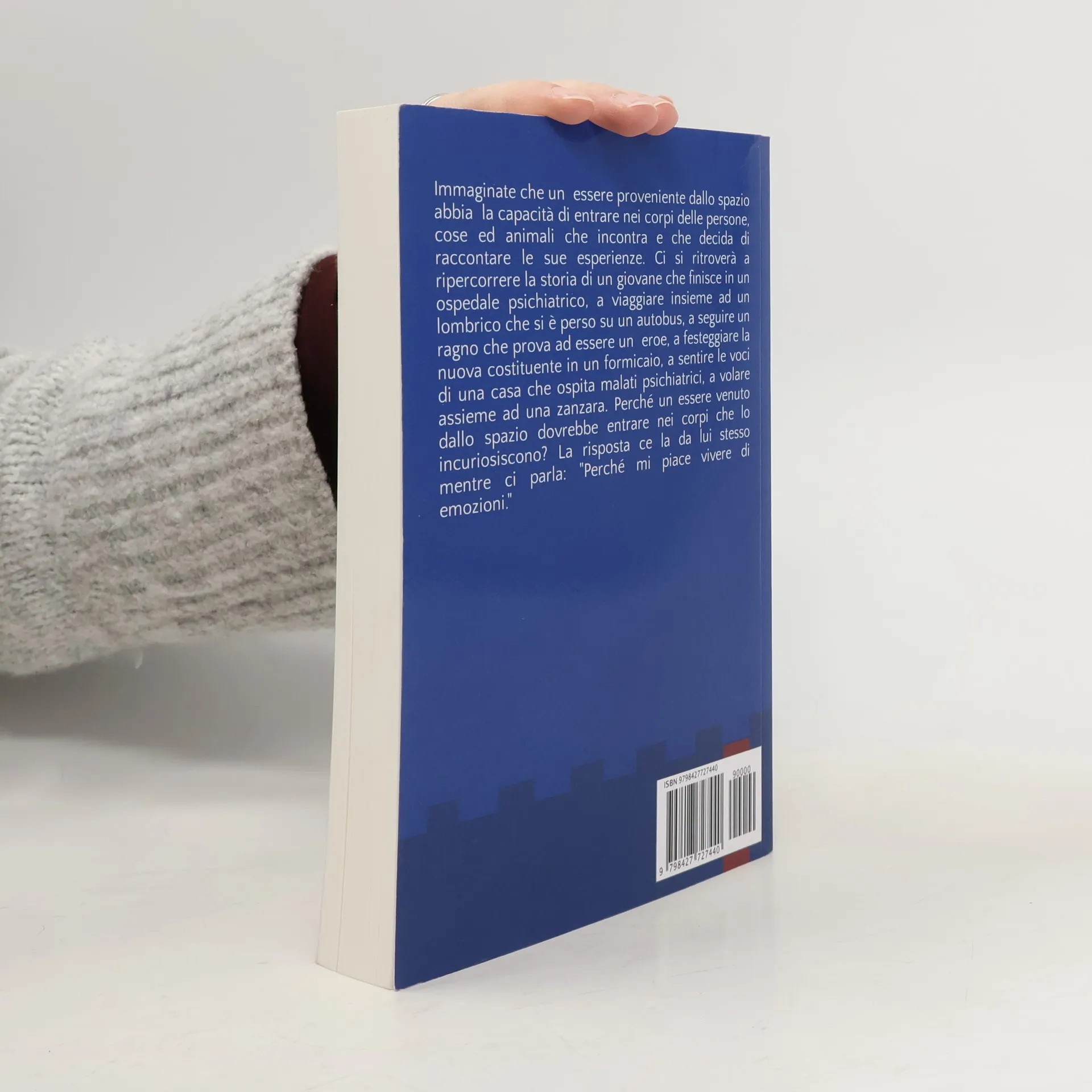 Immaginate che un essere proveniente dallo spazio arrivi sulla terra e che decida di entrare nei corpi delle persone, cose e animali che incontra e che lo incuriosiscono. Vi ritroverete a ripercorrere la storia di un giovane che finisce in un manicomio, a viaggiare insieme ad un lombrico che si è perso su un autobus, a seguire un ragno che prova a diventare un eroe, a festeggiare la nuova costituente in un formicaio, a sentire le voci di una casa che ospita malati psichiatrici, a volare insieme ad una zanzara. Perché un essere venuto dallo spazio dovrebbe entrare ed uscire nei corpi che incontra? La risposta ce la da lui stesso mentre ci parla: "Perché a me piace vivere di emozioni!".