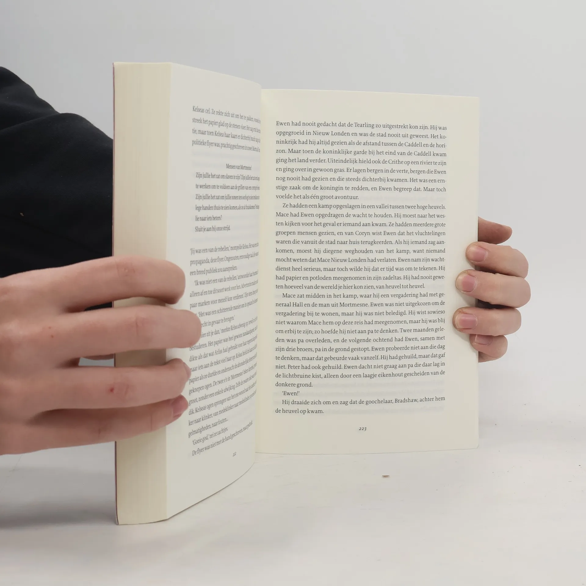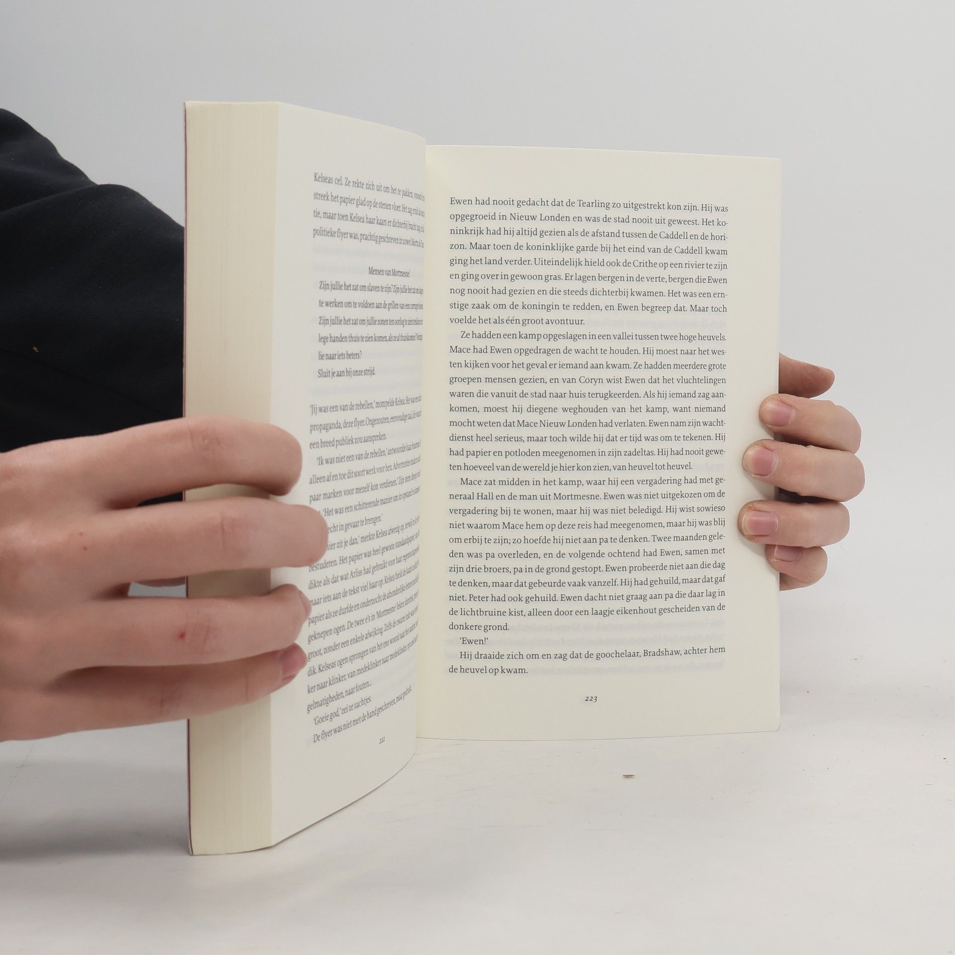 Bloedstollende finale van de internationaal populaire Koningin van de Tearling-serie De Koningin van de Tearling-serie volgt de negentienjarige prinses Kelsea Glynn die na het overlijden van haar -moeder de troon moet terugwinnen en haar koninkrijk, de Tearling, moet verlossen van de Rode Koningin, die de -bevolking terroriseert met duistere magie. Kelsea worstelt niet alleen met de ethische dilemma’s van het regeren maar ook met de dagelijkse problemen die komen kijken bij het opgroeien – en dit alles terwijl ze moet proberen te overleven in een wrede wereld. Om haar volk te beschermen tegen een verwoestende invasie heeft Kelsea het ondenkbare gedaan: ze heeft zichzelf én haar magische saffieren aan de Rode Koningin gegeven, haar felste tegenstander. En ze heeft de Mace, een betrouwbaar lid van de Wachters van de Koningin, in haar plaats regent gemaakt. Maar de Mace zal niet rusten voordat hij en zijn mannen hun koningin hebben bevrijd.