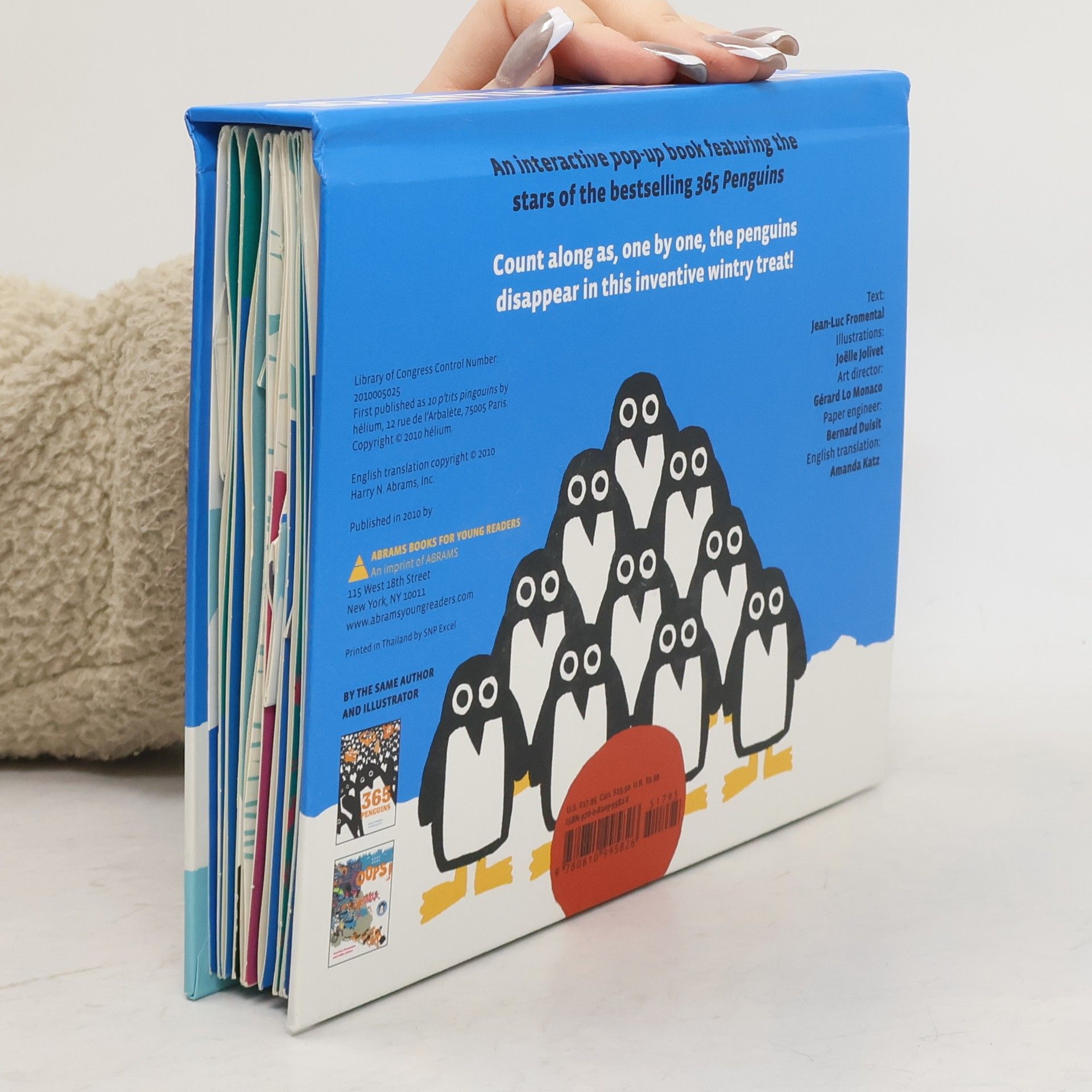 This inventive pop-up, featuring the mischievous stars of Jean-Luc Fromental and Joëlle Jolivet’s 365 Penguins , starts with ten penguins on an icy shore. One by one, they playfully disappear from the scene as the text counts down from ten to zero. The flaps embedded in the book facilitate the story—readers can make the penguins disappear and reappear! It’s a stylish, humorous take on a counting book with winter-friendly, penguin-filled pop-ups.