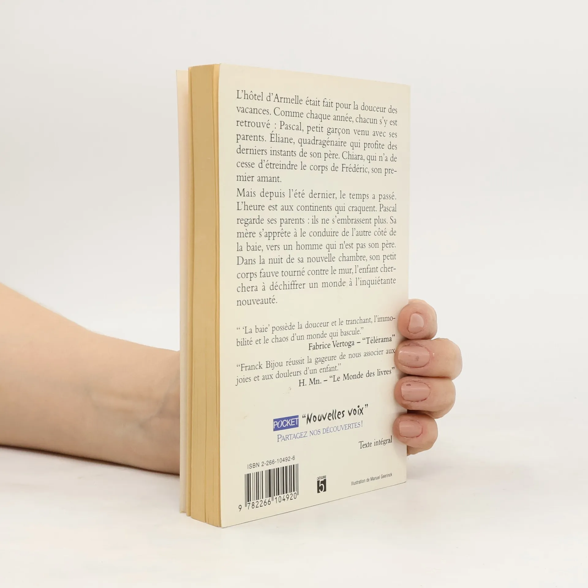 L'hôtel d'Armelle était fait pour la douceur des vacances. Comme chaque année, chacun s'y est retrouvé : Pascal, petit garçon venu avec ses parents. Eliane, quadragénaire qui profite des derniers instants de son père. Chiara, qui n'a de cesse d'étreindre le corps de Frédéric, son premier amant. Mais depuis l'été dernier, le temps a passé. L'heure est aux continents qui craquent. Pascal regarde ses parents : ils ne s'embrassent plus. Sa mère s'apprête à le conduire de l'autre côté de la baie, vers un homme qui n'est pas son père. Dans la nuit de sa nouvelle chambre, son petit corps fauve tourné contre le mur, l'enfant cherchera à déchiffrer un monde à l'inquiétante nouveauté.