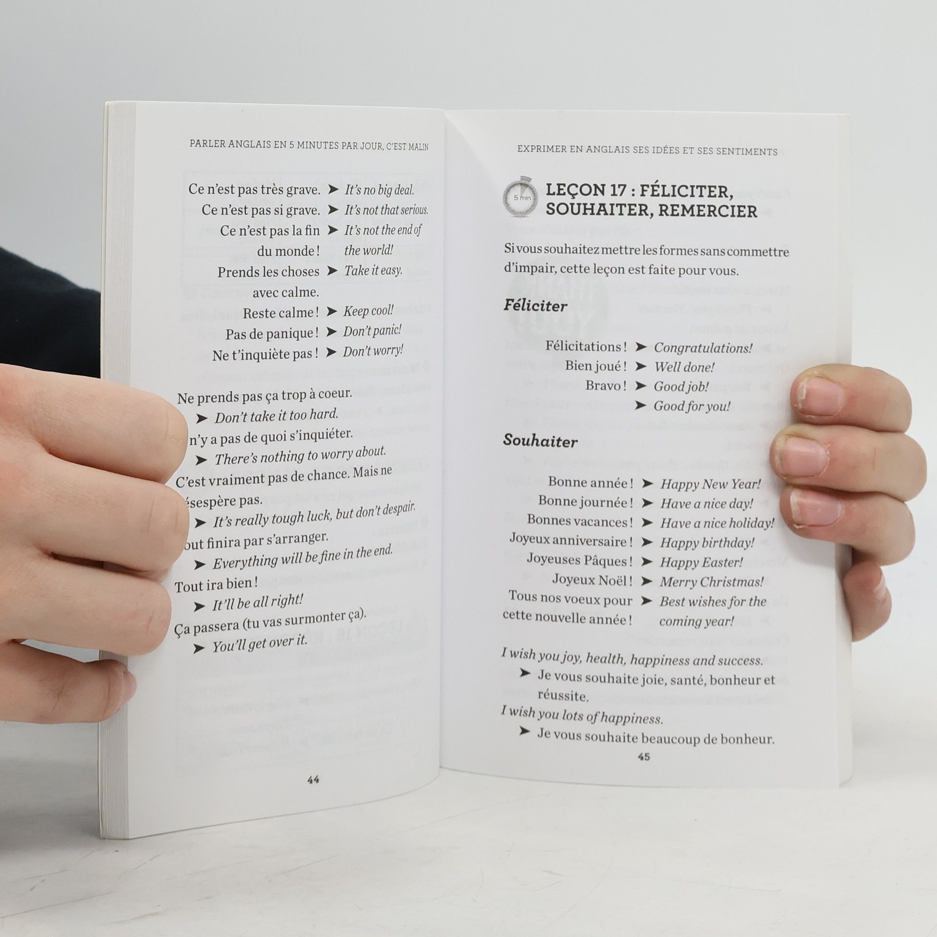 Vous avez besoin de parler anglais et vous n'avez plus aucun souvenir de vos cours ? Vous n'avez pas le temps ni le budget pour vous inscrire dans une formation d'anglais ? Heureusement, les Malins ont pensé à vous ! Dans ce livre : 75 leçons calibrées d'une durée de 5 min top chrono chacune Tout ce qu'il faut savoir pour s'exprimer en anglais, se débrouiller dans les situations de la vie courante Les situations de la vie professionnelle Avec des encadrés de grammaire, le vocabulaire indispensable et les expressions les plus courantes pour parler comme un Anglais ! ENTRE DEUX RENDEZ-VOUS, DANS LES TRANSPORTS, DANS LA SALLE D'ATTENTE !
