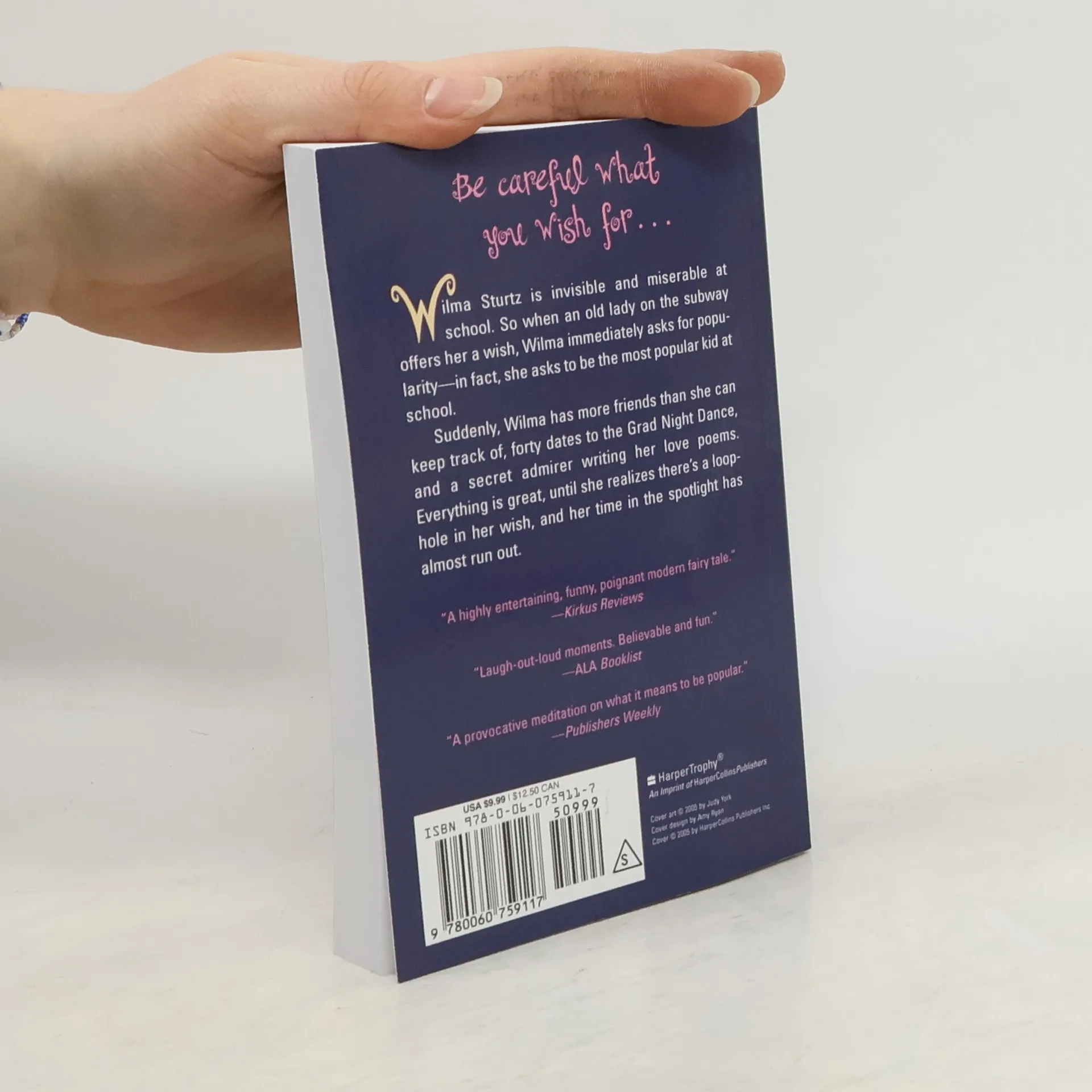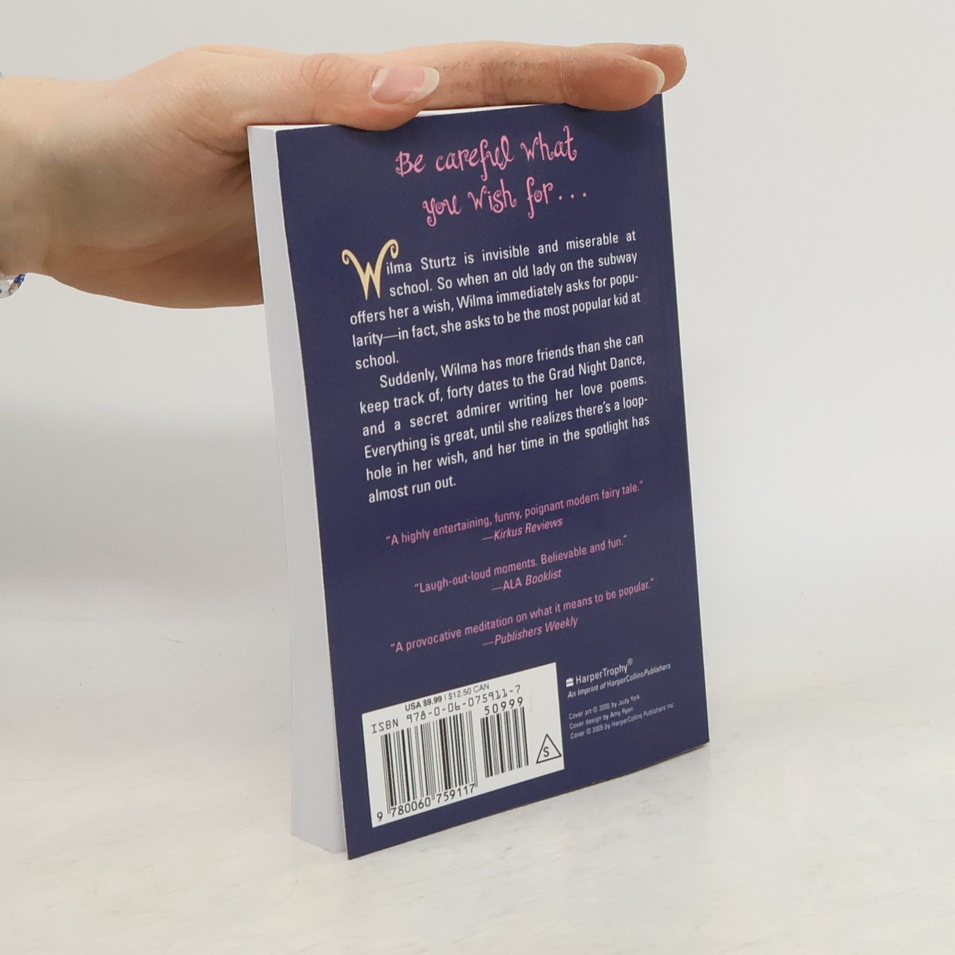 Wilma Sturtz is invisible and miserable at school. So when an old lady on the subway offers her a wish, Wilma immediately asks for popularity -- in fact, she asks to be the most popular kid at school. Suddenly, Wilma has more friends than she can keep track of, forty dates to the Grad Night Dance, and a secret admirer writing her love poems. Everything is great, until she realizes there's a loophole in her wish, and her time in the spotlight has almost run out.