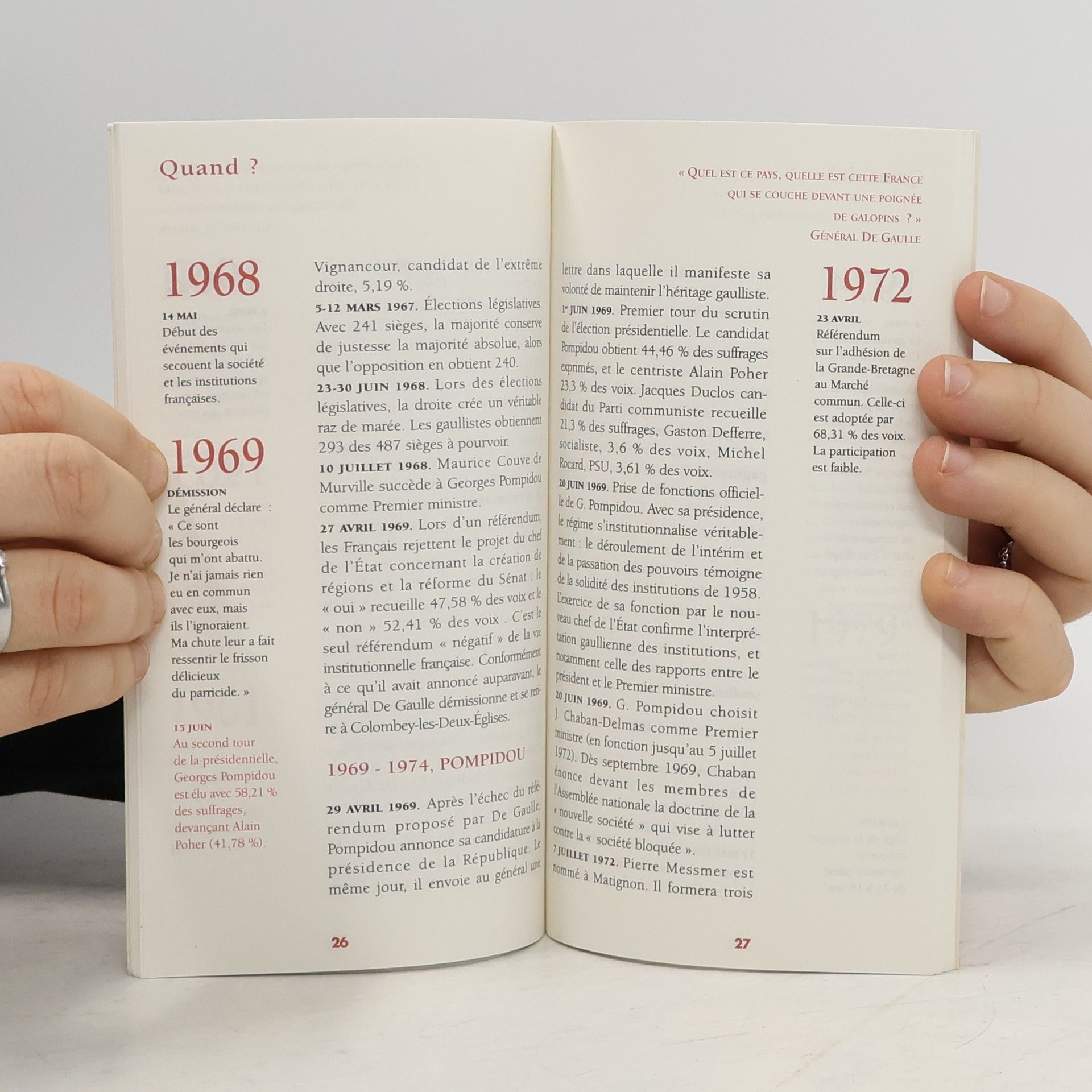 Cette collection répond aux questions essentielles sur les grands sujets d'actualité. Structurée en 6 chapitres :- qui ? des portraits ;- quand ? une chronologie ;- quoi ? le cœur du sujet ;- comment ? des informations pratiques ;- combien ? les chiffres clé ;- où ? les lieux, les adresses.L'actualité en poche !Les Présidents de la RépubliqueQui fut le premier Président de la République française ?Quand a été élu le premier Président de la Ve ?En quoi le Président est-il irresponsable ?Comment est-il élu ?Combien de personnes travaillent à la présidence de la République ?Où sont les annexes de l'Élysée ?« Qui, quand, quoi ? » répond à vos questions.