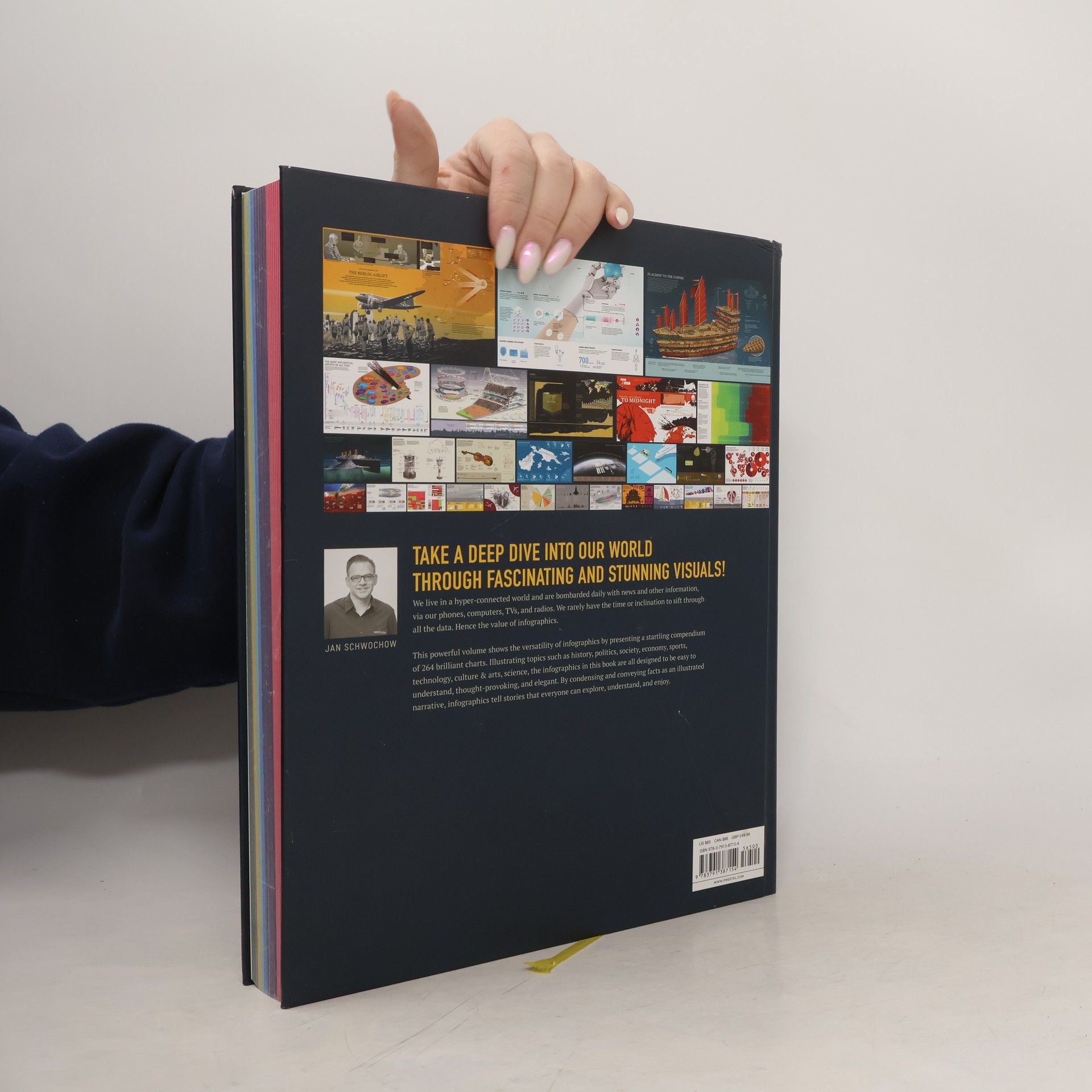 Take a deep dive into history, economics, art, and culture through fascinating and stunning visuals. We live in a hyper-connected world and are bombarded with news and other information, via our phones, computers, TVs, and radios. People don't have the time or energy to sift through all the data. That's where infographics come in. While the idea of illustrating facts and figures has been around for centuries, it is only recently, with the introduction of the internet, that infographics have really taken off as a medium to convey all types of information. This book shows the versatility of infographics by presenting an amazing compendium of 264 charts. Illustrating topics such as history, economics, sports, music, art, science, and culture, the infographics in this book are all designed to be easy to understand, thought-provoking, and elegant. You can explore the evolution of electric vehicles from a tricycle to a Tesla Model 3, discover how supermarkets trick you into buying more food than you need, and see how much work goes into creating a video game. While you browse the pages, you'll find yourself incidentally learning thousands of new things that will astonish you. By condensing and conveying facts as an illustrated narrative, infographics tell stories that everyone can explore, understand, and enjoy.