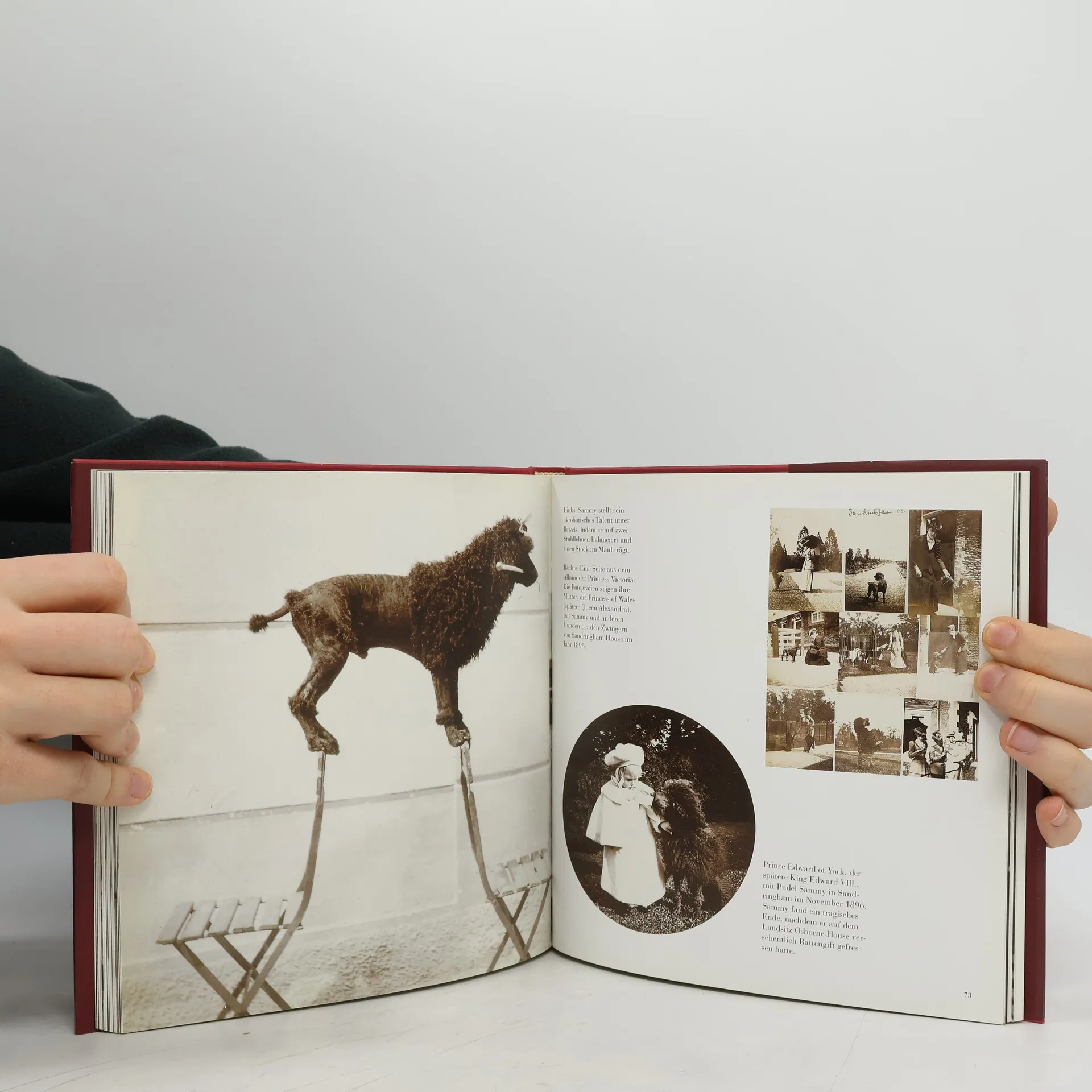 Zu den zahlreichen Schätzen der Royal Photograph Collection in Windsor Castle zählt auch ein kleines Album mit Fotografien königlicher Hunde, das für Queen Victoria angelegt wurde. Dieses bildet den Ausgangspunkt zu dem vorliegenden Band, für den über 150 liebenswerte, heitere und viele bislang unveröffentlichte Bilder der vierbeinigen Gefährten ausgewählt wurden. Die Fotografien zeigen Möpse, Spitze, Dackel und Windhunde, Spaniels und Labradore; Queen Victorias geliebte Collies Sharp und Noble ebenso wie Foxterrier Spot, der auf der Aufnahme von 1883 allem Anschein nach Pfeife raucht, oder Pudel Sammy der 1895 in Sandringham sein akrobatisches Talent unter Beweis stellt. Und natürlich dürfen auch die berühmten Welsh Corgis nicht fehlen, welche die erklärten Lieblinge Ihrer Majestät Queen Elizabeth II. sind, darunter Dookie, ihr erster Corgi, und Susan, von der alle Tiere aus der königlichen Corgi-Zucht abstammen.