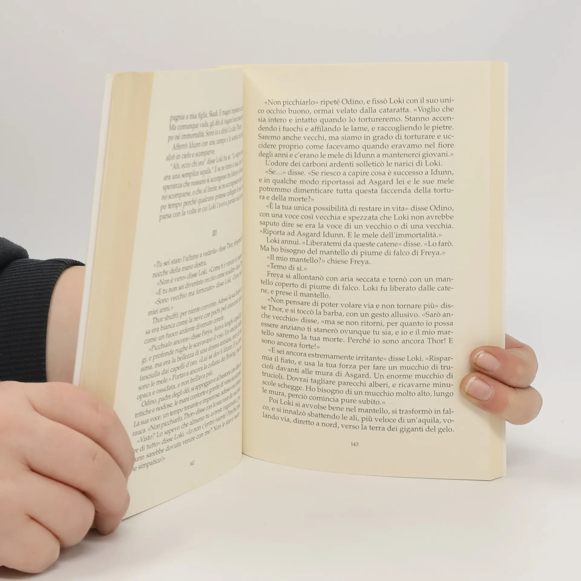 Odino il supremo, saggio, audace e astuto; Thor, suo figlio, incredibilmente forte ma non certo il più intelligente fra gli dèi; e Loki, figlio di un gigante, fratello di sangue di Odino, insuperabile e scaltrissimo manipolatore. Sono alcuni dei protagonisti che animano il nuovo libro di Neil Gaiman: noto per essersi ispirato spesso ai miti dell'antichità nel creare universi e personaggi fantastici, questa volta Gaiman ci offre una formidabile riscrittura dei grandi miti del Nord. Lungo un arco narrativo che inizia con la genesi dei nove leggendari mondi, ripercorriamo le avventure e le gesta di dèi, nani e giganti. Tra i racconti più avventurosi ci sono quello di Thor, che, per riprendersi il martello che gli è stato rubato, è costretto a travestirsi da donna, un'impresa non da poco considerando la sua barba e il suo sconfinato appetito; o quello di Kvasir - il più saggio fra gli dèi - il cui sangue viene trasformato in un idromele che colma di poesia chi lo assaggia. Il finale del libro invece è dedicato a Ragnarok, il giorno del giudizio, il crepuscolo degli dèi, ma anche la nascita di un nuovo tempo e nuovi popoli.