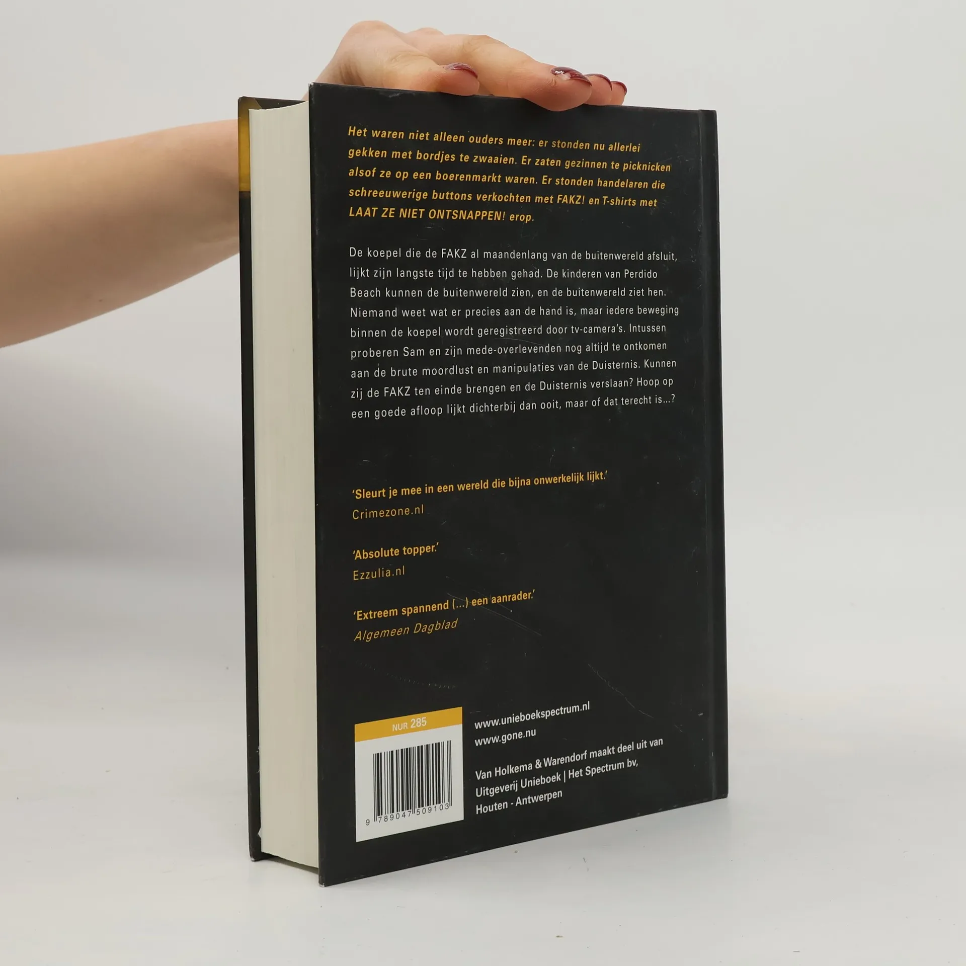 De koepel die de FAKZ al maandenlang van de buitenwereld afsluit, lijkt zijn langste tijd te hebben gehad. De kinderen van Perdido Beach kunnen de buitenwereld zien, en de buitenwereld ziet hen. Niemand weet wat er precies aan de hand is, maar iedere beweging binnen de koepel wordt geregistreerd door tv-cameras. Intussen proberen Sam en zijn mede-overlevenden nog altijd te ontkomen aan de brute moordlust en manipulaties van de Duisternis. Kunnen zij de FAKZ ten einde brengen en de Duisternis verslaan? Hoop op een goede afloop lijkt dichterbij dan ooit, maar of dit terecht is?