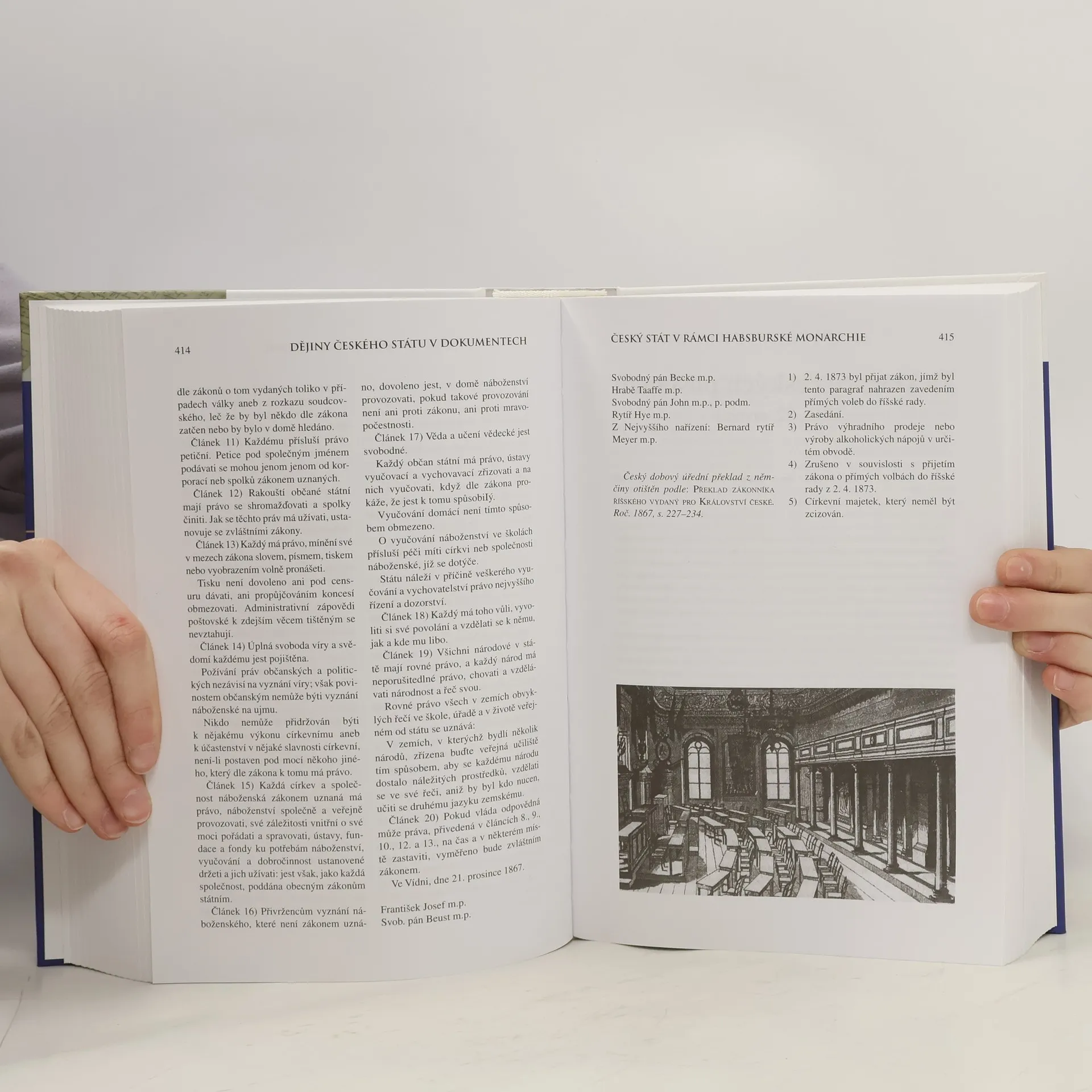 Publikace je unikátní komentovanou edicí základních dokumentů k dějinám českého státu od jeho historických počátků až do současnosti. Editor čtenáři nabízí autentické texty v podobě dobových listin, záznamů, zákonů a dalších písemných dokumentů. Každý dokument je uveden vstupním komentářem, postihujícím základní souvislosti jeho vzniku a jeho význam. Cenné jsou rovněž vysvětlující doprovodné poznámky a připojené přehledy (chronologie, přehled vlády nejvyšších představitelů českého státu). Oproti předchozímu vydání před deseti lety editor publikaci doplnil o další dokumenty (např. visegrádské smlouvy z roku 1335, korunovační řád českého krále z roku 1347, sněmovní usnesení o českém jazyce z roku 1615, detronizace Habsburků v roce 1918, modus vivendi s Vatikánem z roku 1928 či protokol o rozpuštění Varšavské smlouvy z roku 1991). Publikace je doplněna bibliografickými, mapovými a obrazovými přílohami, které umocňují nejen její odbornou, ale i estetickou úroveň. Jedná se o mimořádné dílo, tvořící nezbytný doplněk všech přehledných a syntetických zpracování českých dějin.