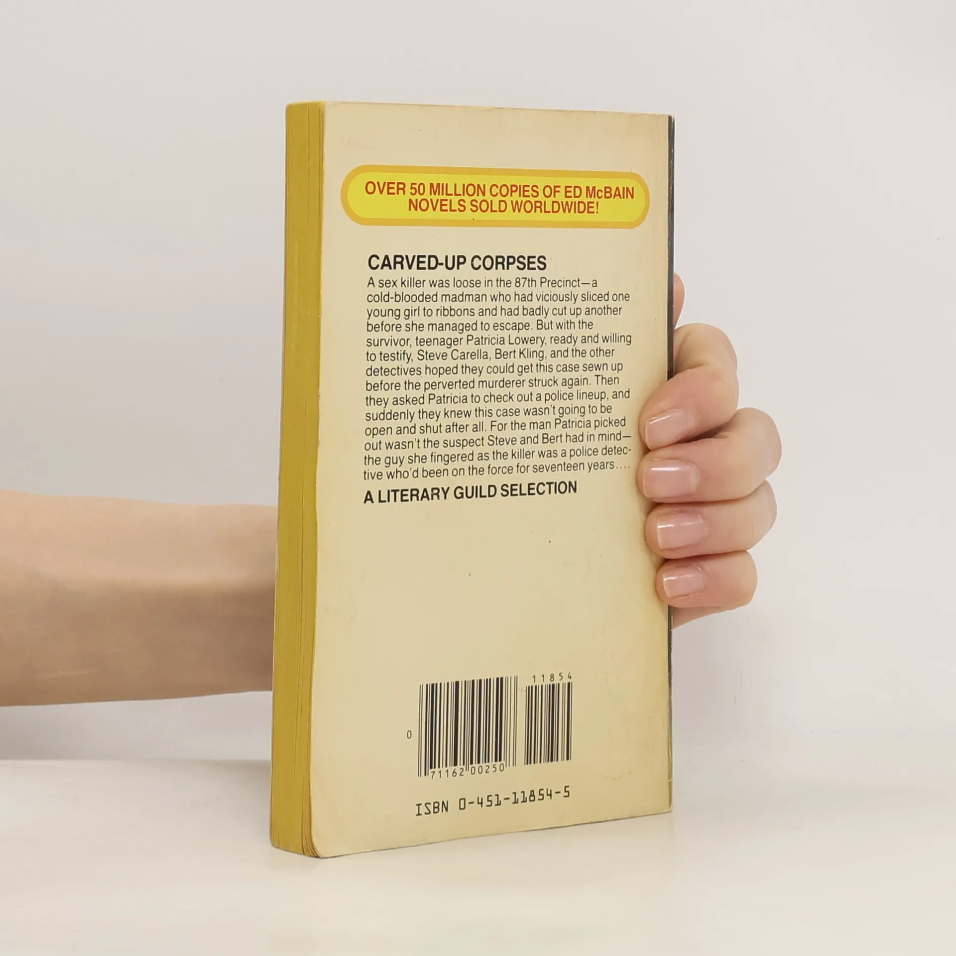 "Bloody palmprints. He would always remember seeing first the bloody prints, one on each side of the glass-paneled doors. And then the doors swinging open and the girl spilling into the room. Arms wide, hands imploring . . . blue dress torn open over white blood-smeared bra, she lurched toward the muster desk, beseeching Kling to help, for God's sake, help." The girl was Patricia Lowery, fifteen years old. She was the lucky one. Soon after, they found her cousin, Muriel Stark, seventeen, lying in a doorway, her body ripped with knife wounds. Hysterically, Patricia talked to Detectives Steve Carella and Bert Kling of the 87th Precinct, telling her brutal story of molestation and murder. The man was tall, dark-haired, blue-eyed, she said; he had a knife blade four inches long, she would never forget what he looked like, what he made them do. Immediately, Kling and Carella set out to find the killer, launching interrogations, file searches, laboratory analyses -- all the weapons of investigation at their command. The twisting, blood-spotted trail leads them deep into the warped world of the sex offender. Then, click. Tall, dark hair, blue eyes, phony alibi. And a positive identification from Patricia: "I said I'd never forget." There's only one problem. He's the wrong man.
