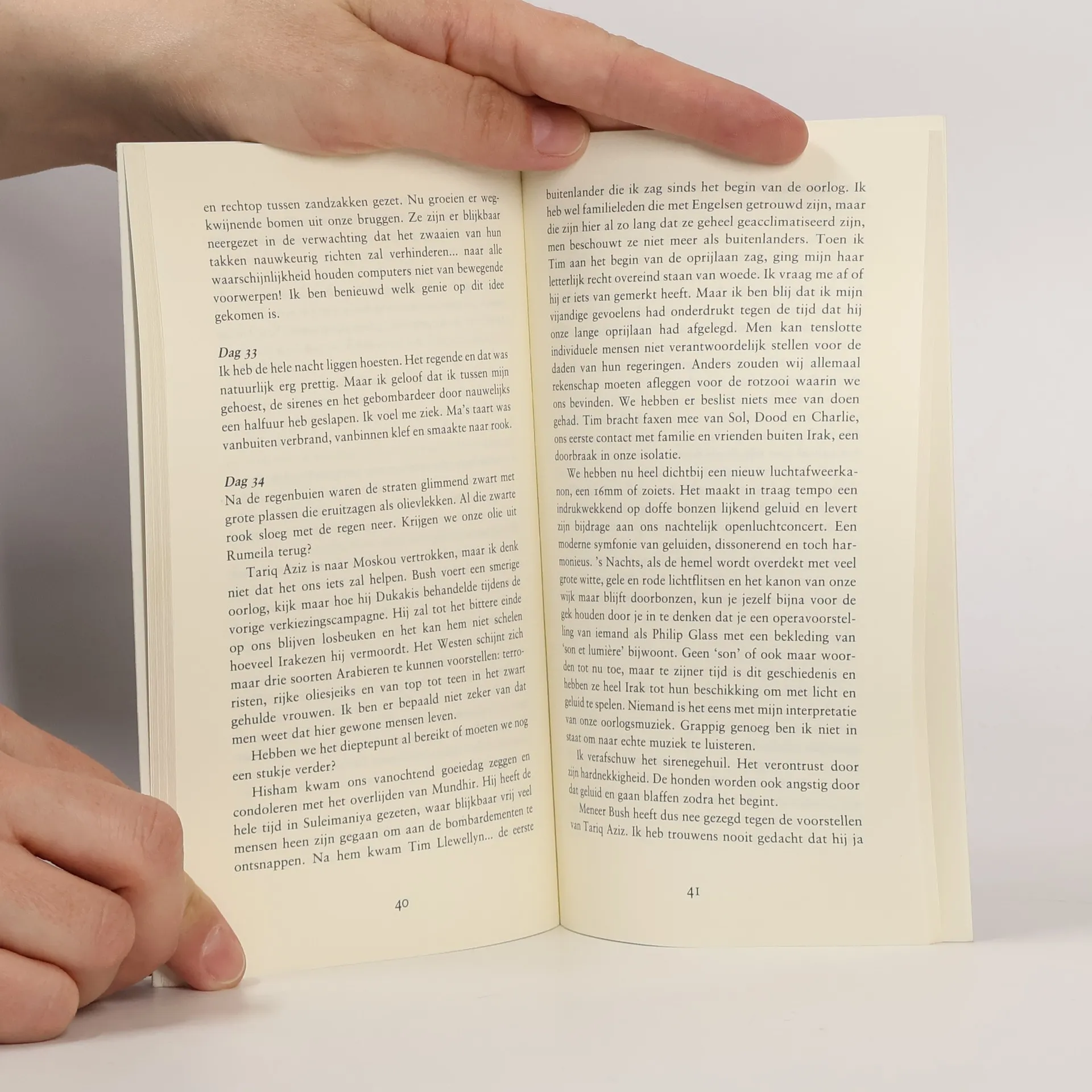 Bagdad, januari 1991. De Golfoorlog barst los. De schilderes Nuha Al-Radi besluit een dagboek bij te houden. Tweeënveertig dagen lang, vierentwintig uur per etmaal, zullen tienduizenden geallieerde 'precisiebombardementen' het leven in de stad tot een hel te maken. Dit ingetogen verslag toont de onmogelijkheid en de onmenselijkheid van een 'schone' oorlog. Een aangrijpend relaas over lawaai, vuil, onzekerheid, wanhoop en angst.