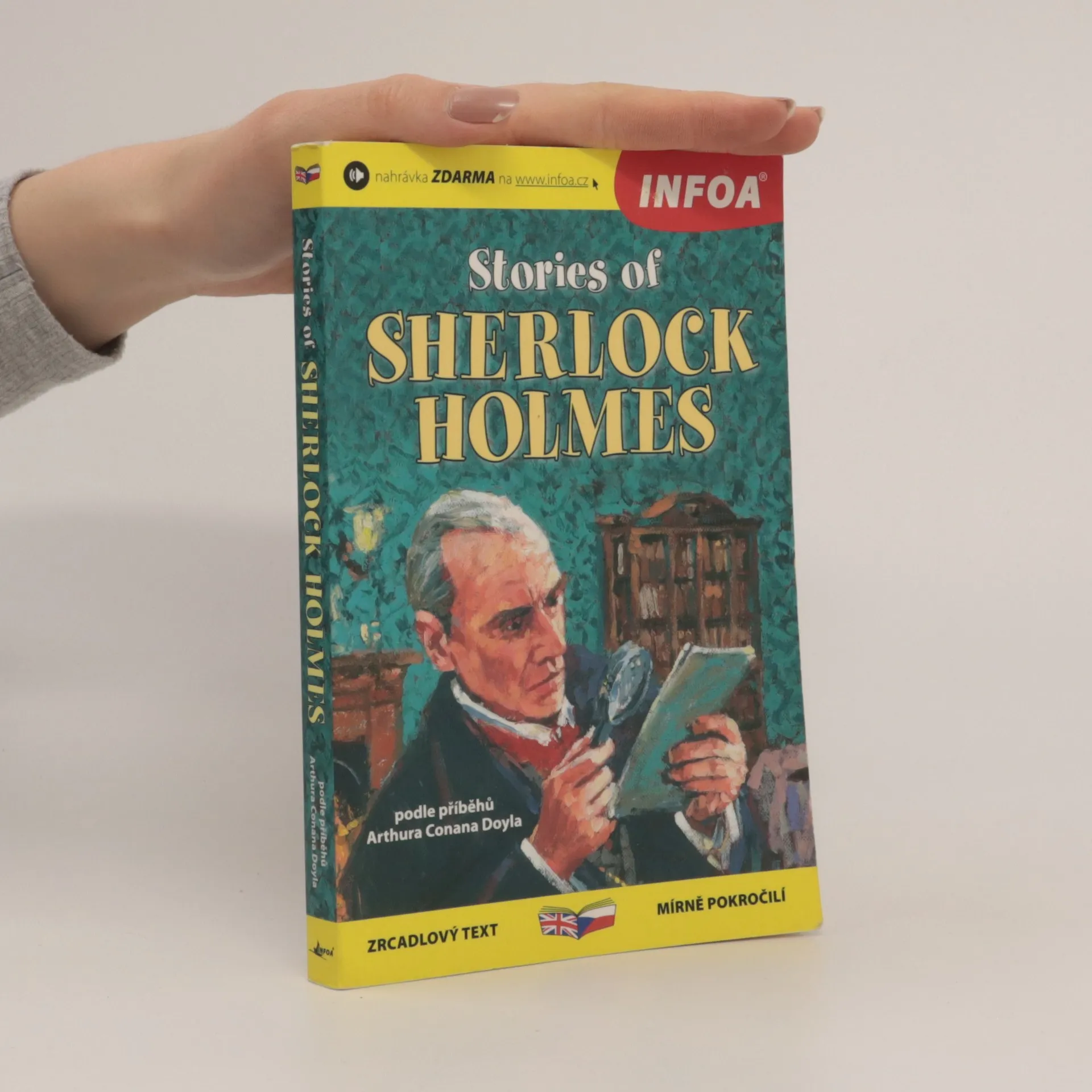 Jazyková úroveň: Mírně pokročilí. Klasické příběhy Sherlocka Holmese podle Sira Arthura Conana Doyla. Sherlock Holmes s pomocí věrného Dr. Watsona musí použít veškerý svůj um a mazanost, aby vyřešil čtyři velmi rozdílné záhady, – krysu, velký modrý klenot, slavného dostihového koně a mladou dámu, která je ve větším nebezpečí, než si uvědomuje... Nahrávky ZDARMA na infoa.cz.