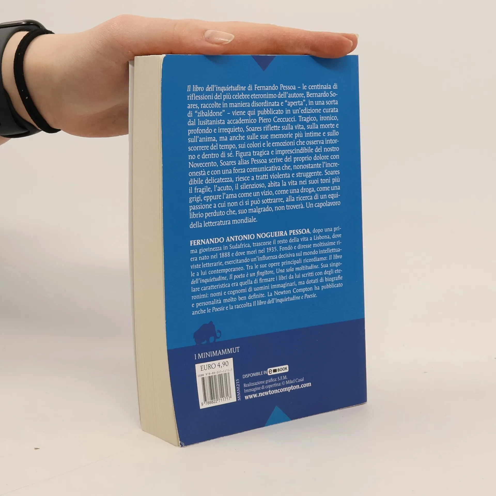 <i>l libro dell’inquietudine</i> di Fernando Pessoa – le centinaia di riflessioni del più celebre eteronimo dell’autore, Bernardo Soares, raccolte in maniera disordinata e “aperta”, in una sorta di “zibaldone” – viene qui pubblicato in un’edizione curata dal lusitanista accademico Piero Ceccucci. Tragico, ironico, profondo e irrequieto, Soares riflette sulla vita, sulla morte e sull’anima, ma anche sulle sue memorie più intime e sullo scorrere del tempo, sui colori e le emozioni che osserva intorno e dentro di sé. Figura tragica e imprescindibile del nostro Novecento, Soares alias Pessoa scrive del proprio dolore con onestà e con una forza comunicativa che, nonostante l’incredibile delicatezza, riesce a tratti violenta e struggente. Soares il fragile, l’acuto, il silenzioso, abita la vita nei suoi toni più grigi, eppure l’ama come un vizio, come una droga, come una passione a cui non ci si può sottrarre, alla ricerca di un equilibrio perduto che, suo malgrado, non troverà. Un capolavoro della letteratura mondiale.