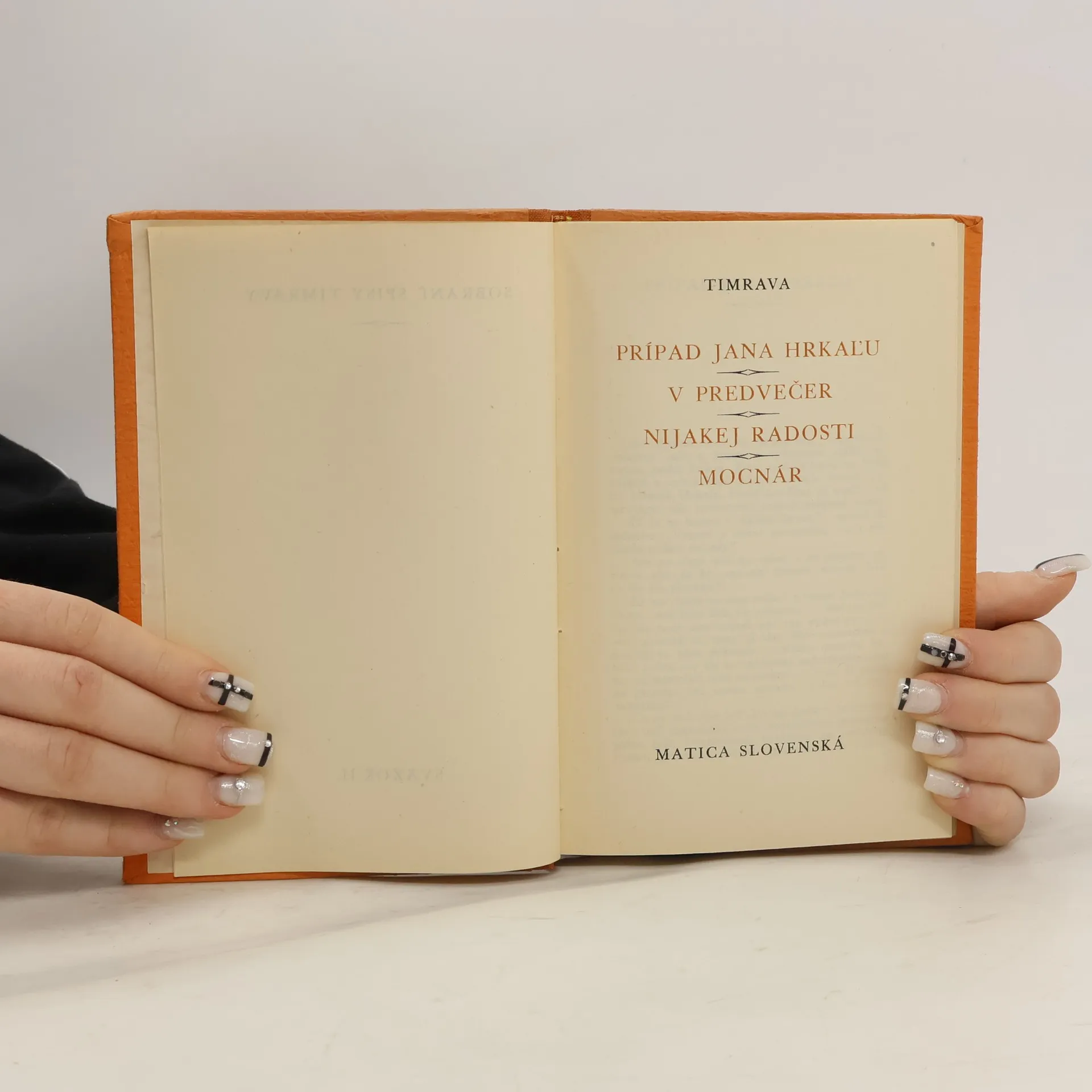 Prípad Jana Hrkala. V predvečer. Nijakej radosti. Mocnár, Timrava