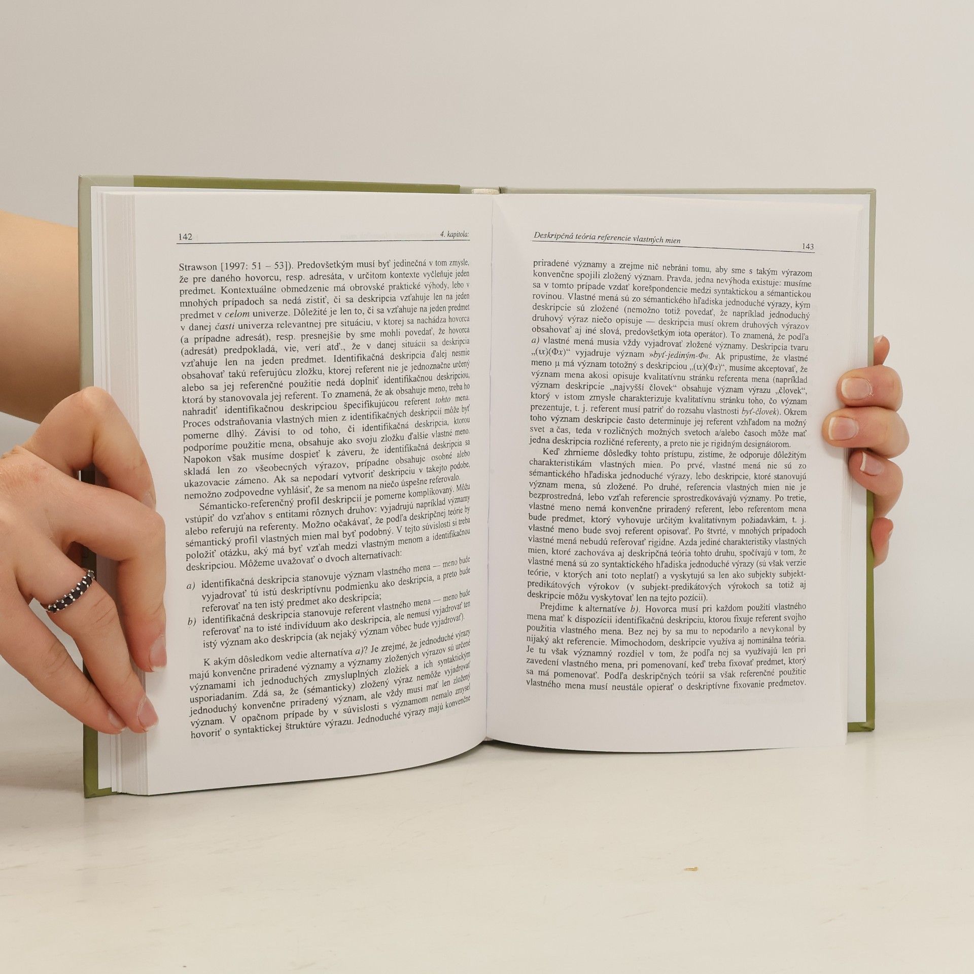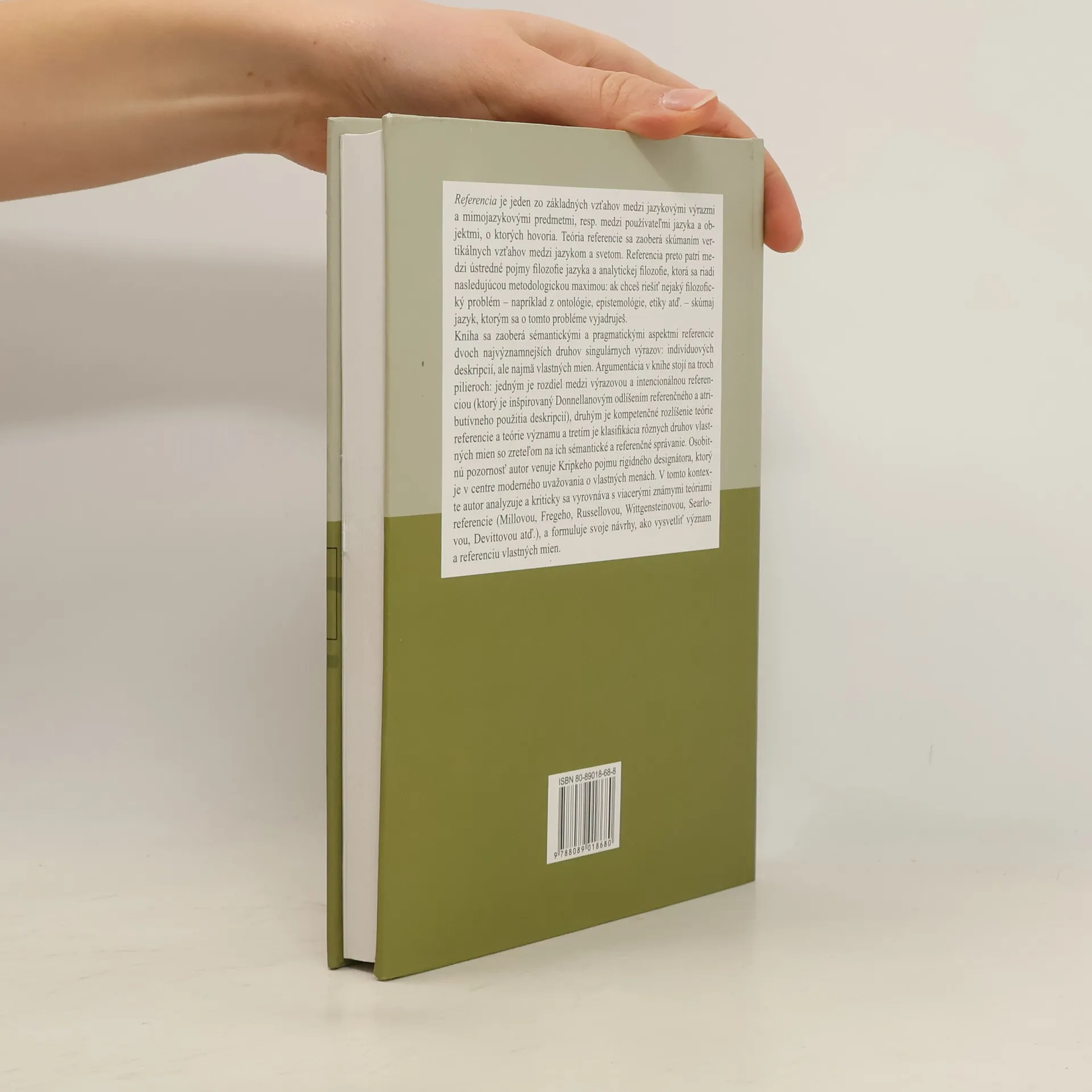 Referencia je jeden zo základných vzťahov medzi jazykovými výrazmi a mimojazykovými predmetmi, resp. medzi používateľmi jazyka a objektmi, o ktorých hovoria. Kniha sa zaoberá sémantickými a pragmatickými aspektmi referencie dvoch najvýznamnejších druhov singulárnych výrazov: indivíduových deskripcií, ale najmä vlastných mien. Osobitnú pozornosť autor venuje Kripkeho pojmu rigidného designátora, ktorý je v centre moderného uvažovania o vlastných menách. V tomto kontexte autor analyzuje a kriticky sa vyrovnáva s viacerými známymi teóriami referencie, a formuluje svoje návrhy, ako vysvetliť význam a referenciu vlastných mien.