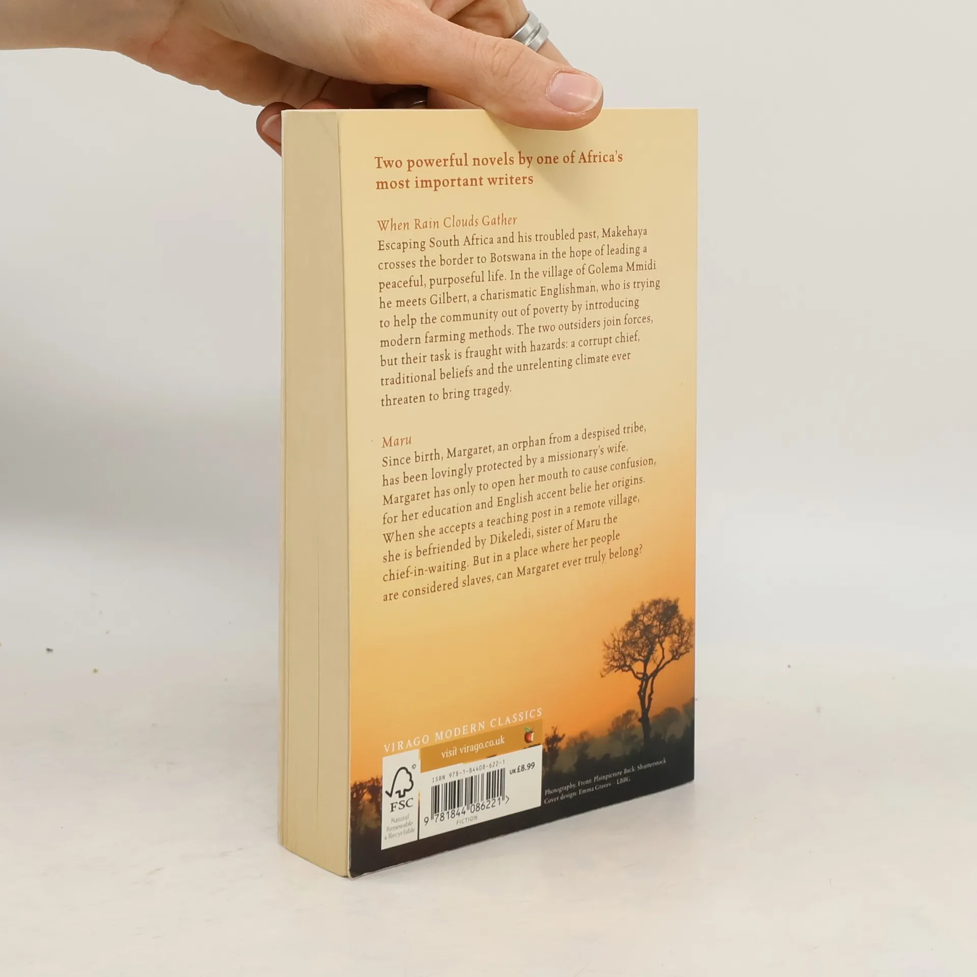 When Rainclouds Gather: Escaping South Africa and his troubled past, Makehaya crosses the border to Botswana, in the hope of leading a peaceful, purposeful life. In the village of Golema Mmidi he meets Gilbert, a charismatic Englishman who is trying to modernise farming methods to benefit the community. The two outsiders join forces, but their task is fraught with hazards: opposition from the corrupt chief, the pressures of tradition, and the unrelenting climate ever threaten to bring tragedy. Maru: Margaret, an orphan from a despised tribe, has lived her life under the loving protection of a missionary's wife. She has only to open her mouth to cause confusion, for her education and English accent do not fit her looks. When she accepts her first teaching post, in a remote village, Margaret is befriended by Dikeledi, sister of Maru the chief-in-waiting. Despite making influential friends, Margaret faces prejudice even from the children she teaches, and her presence causes Maru and his best friend - also Dikeledi's lover - to become sworn enemies.