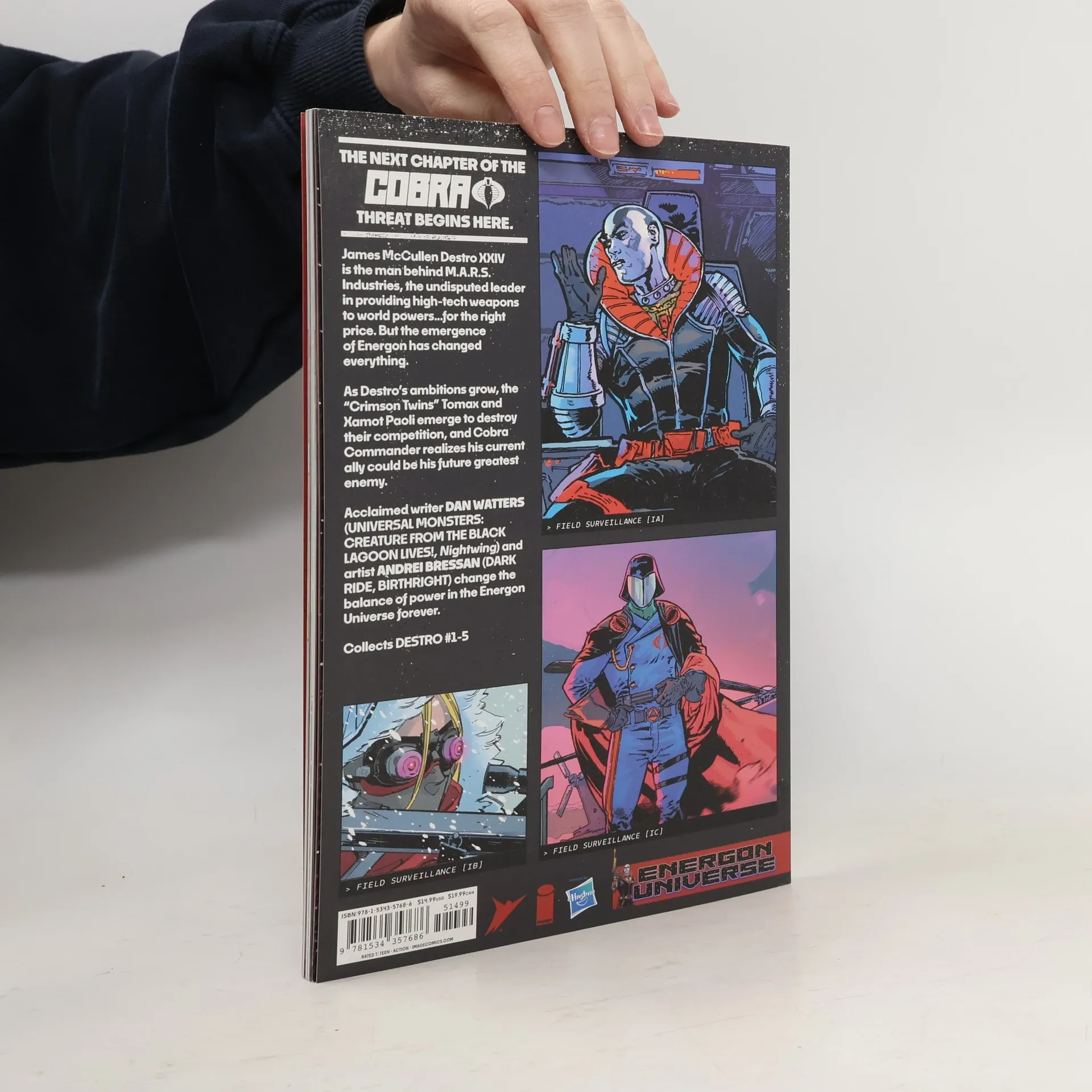 For Fans of COBRA COMMANDER – DESTRO has major ambitions now that Energon has been discovered, but he’ll have to balance keeping his allies close while crushing his enemies to maintain his power. THE NEXT CHAPTER OF THE COBRA THREAT BEGINS HERE. James McCullen Destro XXIV is the man behind M.A.R.S. Industries, the undisputed leader in providing high-tech weapons to world powers...for the right price. But the emergence of Energon has changed everything. As Destro’s ambitions grow, the “Crimson Twins” Tomax and Xamot Paoli emerge to destroy their competition, and Cobra Commander realizes his current ally could be his future greatest enemy. Acclaimed writer Dan Watters (Loki, Universal Monsters: Creature from the Black Lagoon Lives!) and artist Andrei Bressan (Dark Ride, Birthright) change the balance of power in the Energon Universe forever.
