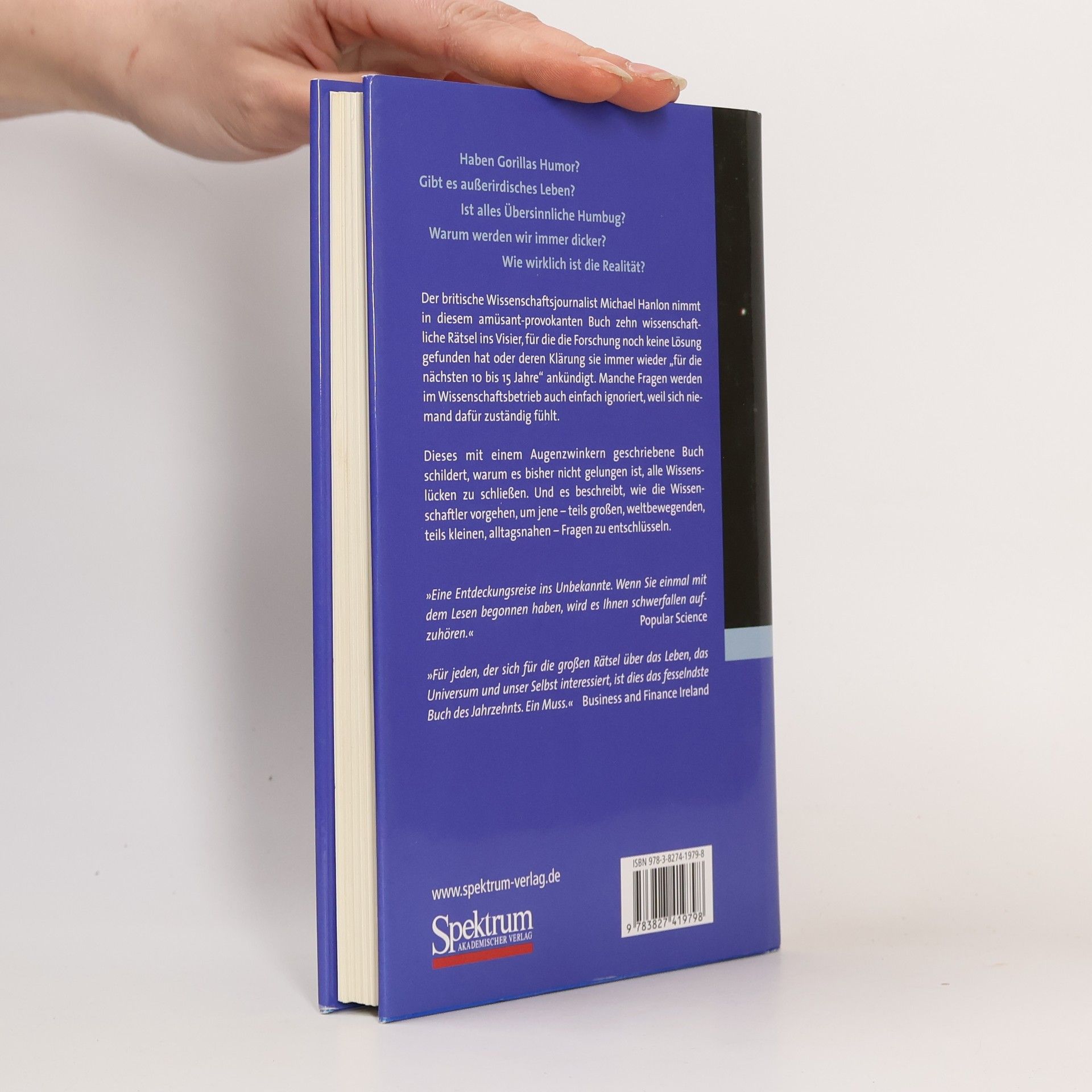 Haben Gorillas Humor? Gibt es Leben im Universum? Ist alles Übersinnliche Humbug? Dieses schillernde Buch präsentiert zehn verschiedene wissenschaftliche Rätsel, für die es noch keine Lösungen gibt oder deren Klärung immer wieder aufgeschoben wird. Einige Fragen werden ignoriert, da sie zu schwierig, verwirrend oder kostspielig sind. In diesem humorvollen Werk erfahren Sie, warum es bisher nicht gelungen ist, diese Wissenslücken zu schließen, und wie Wissenschaftler an bedeutenden sowie alltäglichen Fragen arbeiten. Es sind Fragen, die neugierige Schüler ihren Lehrern stellen – oft mit der Antwort, sie sollten sich auf das Wesentliche konzentrieren. Michael Hanlon reflektiert, wie unsere Vorfahren vor 3.000 Jahren in die Nacht blickten und sich fragten, was der große, leuchtende Himmelskörper ist. Während wir heute vieles über die Sonne und unseren Körper wissen, gibt es dennoch viele ungelöste Rätsel. Hanlon argumentiert, dass wir trotz der Fortschritte in der Wissenschaft nicht zu selbstsicher sein sollten. Für jede gelöste Frage gibt es zahlreiche neue Rätsel, die auf Antworten warten. In diesem Buch werden einige der faszinierendsten Fragen vorgestellt, die die Wissenschaft bislang nicht beantwortet hat.