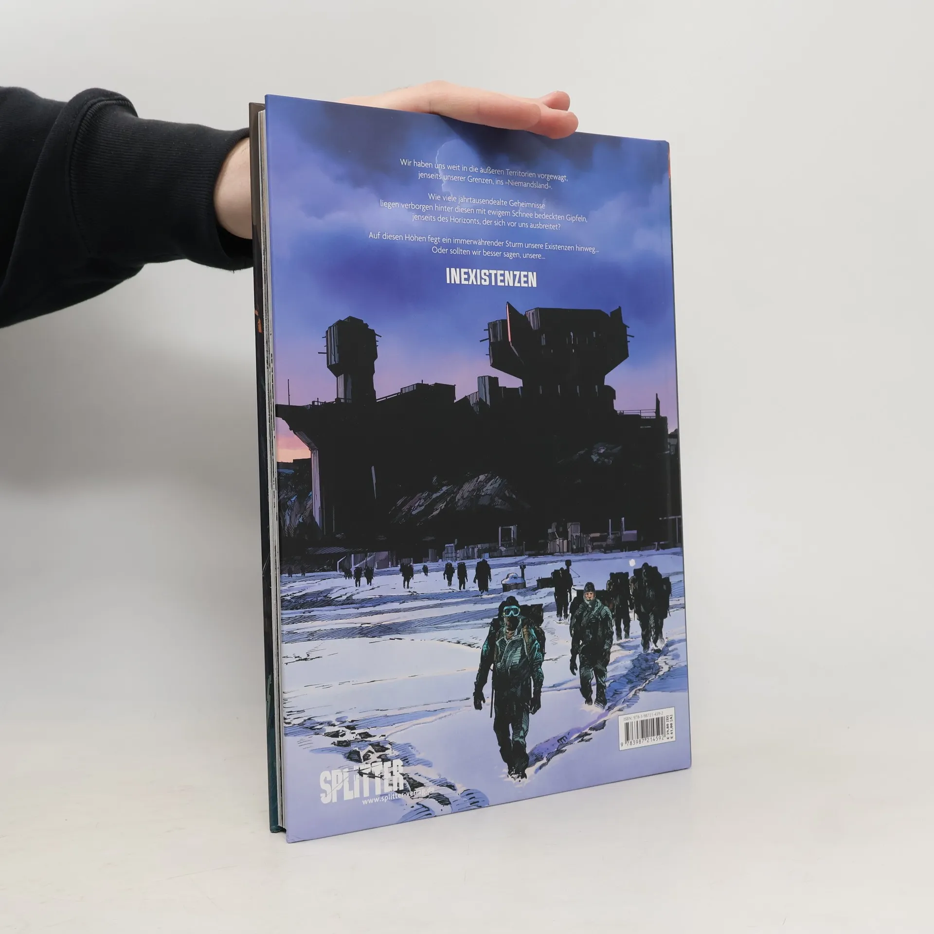Schnee und Eis, Granit und Stahl – die Welt ist ein lebensfeindlicher Ort geworden. Die Überlebenden eines globalen Konflikts, dessen Ursachen längst in Vergessenheit geraten sind, durchwandern die trostlosen Überreste unserer Zivilisation und den endlosen Winter der Postapokalypse. Gerüchte besagen, dass es einen letzten Zufluchtsort gibt, an dem ein Kind lebt, in dem das Wissen der alten Zeit schlummert. Und ein Scharfschütze namens Sol will diesen Gerüchten auf den Grund gehen. Nachdem er jahrelang auschließlich als Szenarist arbeitete, legt Christophe Bec mit »Inexistenzen« seinen ersten selbstgezeichneten Comic seit »Heiligtum« vor. Handwerklich makellos, visuell vielseitig und erzählerisch reduziert – »Inexistenzen« ist ein souveräner Beleg für Becs Meisterschaft in dem Genre der Neunten Kunst. Beinhaltet 3 Panorama-Seiten zum Ausfalten