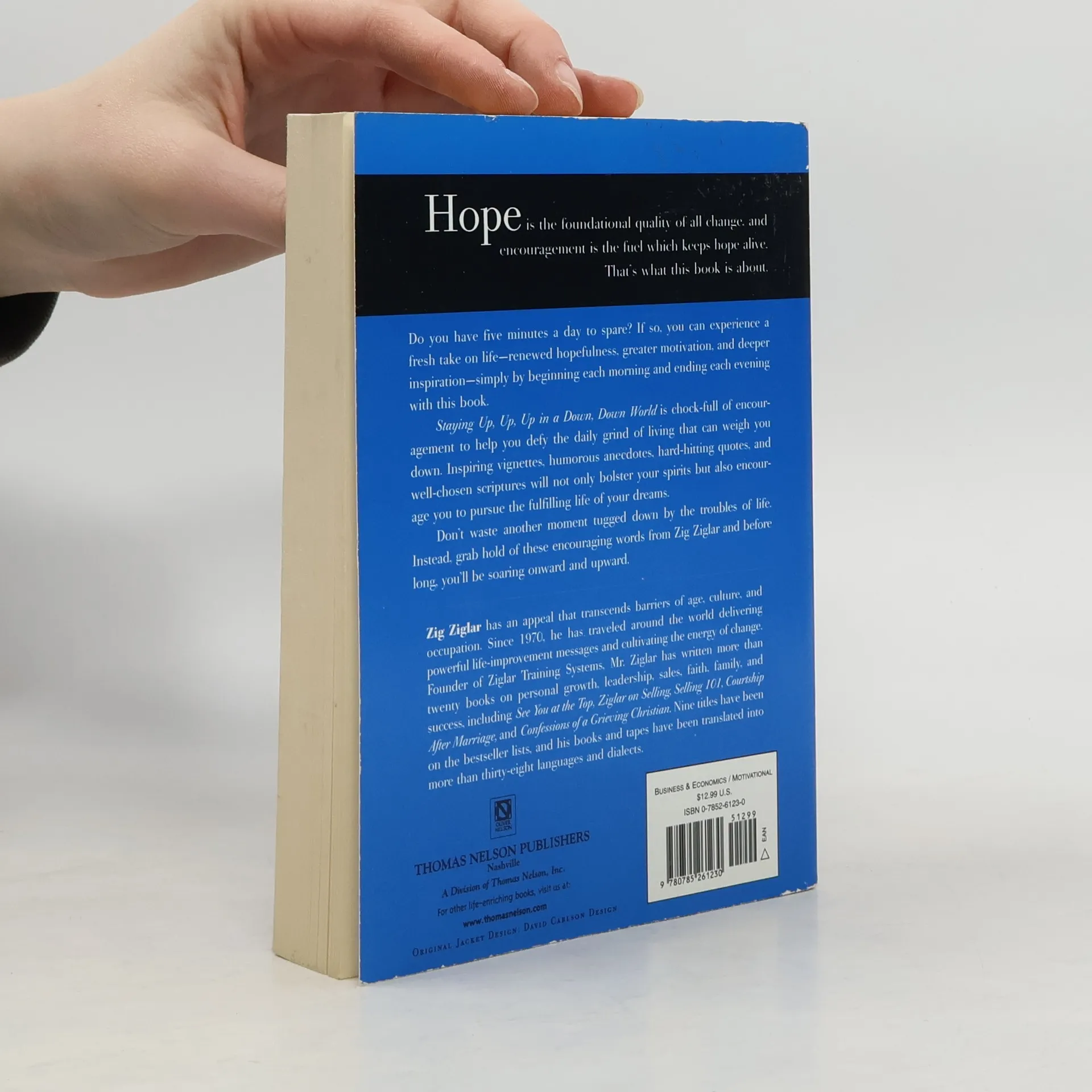 The daily grind can be exhausting-both physically and mentally. Motivational speaker Zig Ziglar offers this devotional as an antidote to "jump start" your day! You can face each weekday morning with a power-packed message and end the day with encouraging words that will promote restful sleep. Full of motivation and inspiration, Staying Up, Up, Up in a Down, Down World is a combination of inspiring vignettes, humorous anecdotes, well-chosen quotes, and relevant Scriptures. Don't allow yourself to be dragged down by day-to-day trials; instead, allow the positive words of Ziglar to lift you up each day.